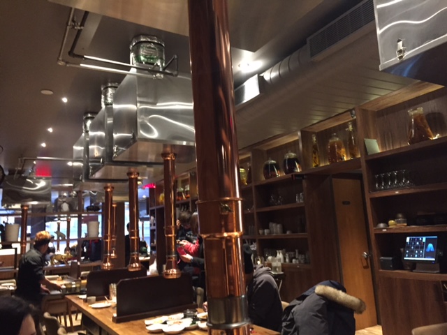 The first floor looks normal enough, but upstairs? You’ll find some pretty sweet window seats, and even a large (potentially) private back room. Each table is outfitted with moveable chimney/exhaust fans. The copper hardware along with the brick wall and random antique curios give almost a steampunk feel to this floor.