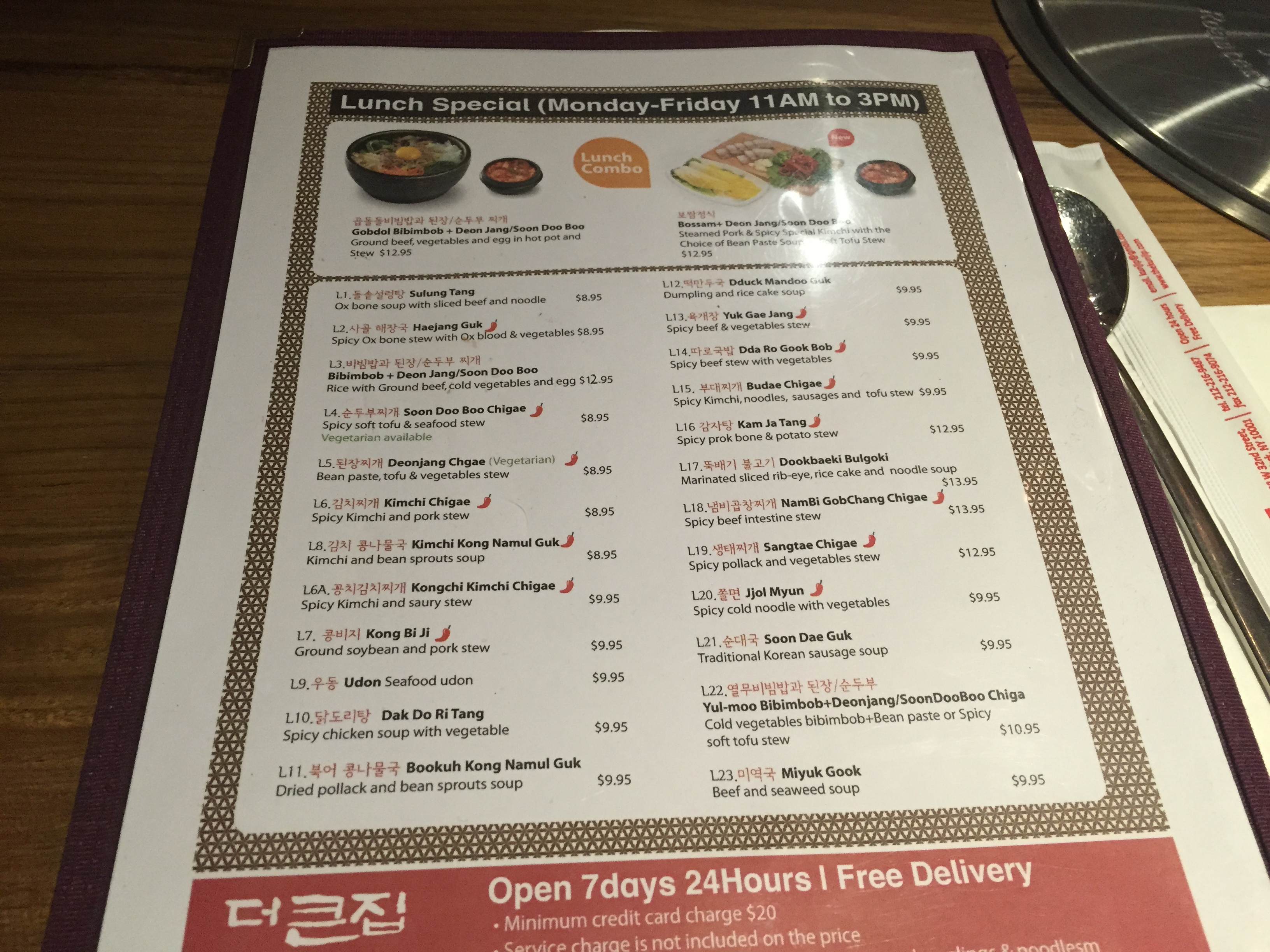 – Most lunch menu items are spicy and stews, few other dishes available on lunch menu