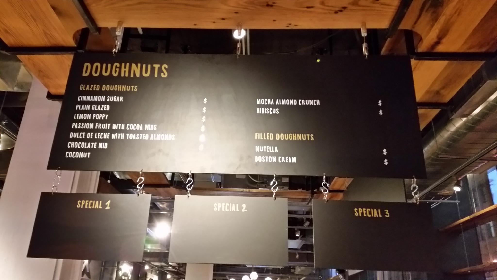 Dough had plenty of doughnuts on display, and the set up to make them fresh, but their menu (wisely?) displayed no prices.