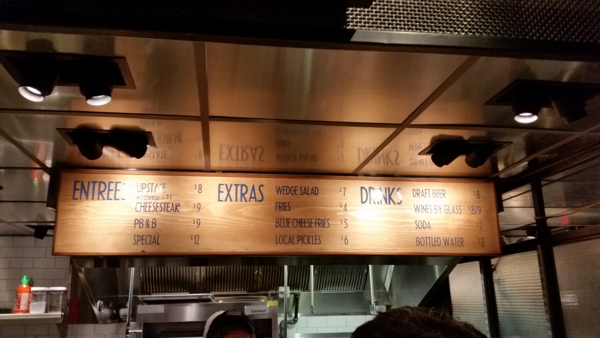 Whitman’s offers up burgers and its accompaniments. Everything except the “special” is under $10. I’m guessing the special rotates.