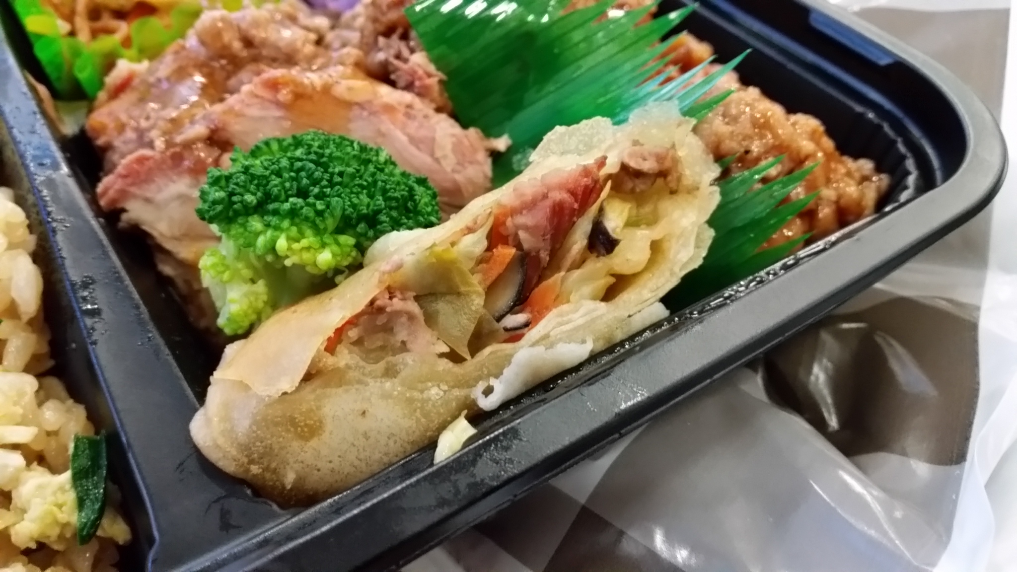 A soft veggie and shredded pork ‘egg roll’ half sat on one side. Not the greatest, but that was definitely not the focus of this bento.