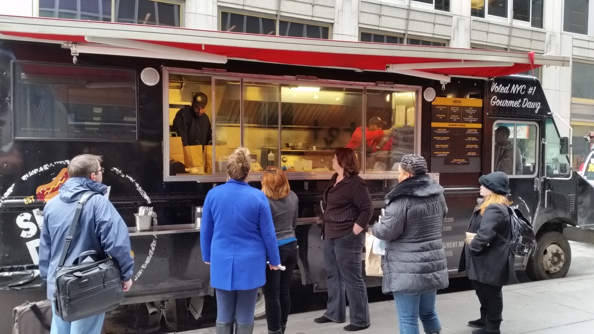 On another jaunt through midtown, I stumbled across this truck bragging they were “Voted NYC #1 Gourmet Dawg” – I was born & raised in NYC, but the only time I say “dawg” is with extreme sarcasm, or when I’m extremely inebriated. Regardless, pictures of the menu and why ML readers probably aren’t too interested in this truck, after the jump…