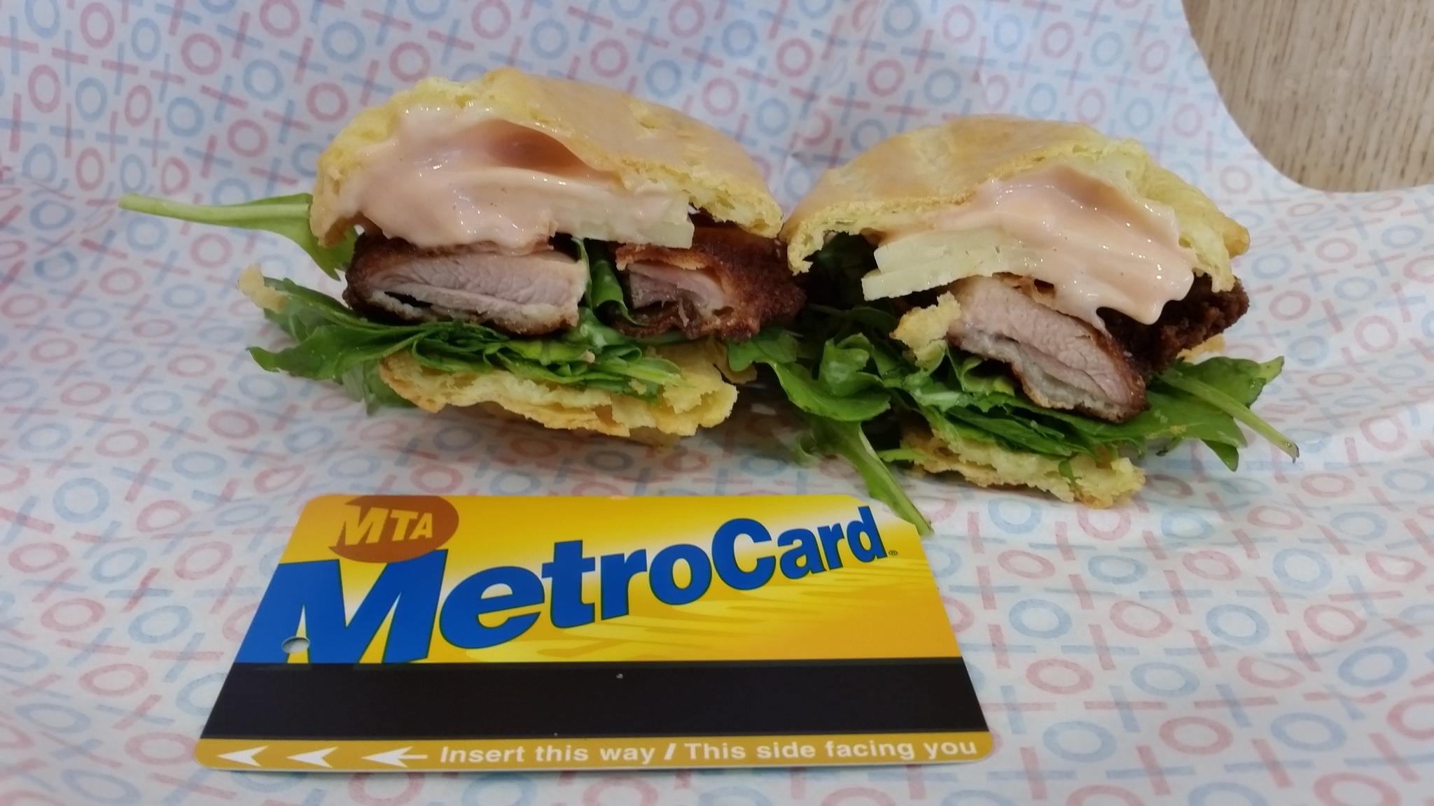 Oh… okay. Well, I quickly chose the fried chicken sandwich, with Vermont cheddar, arugula and BBQ mayo, because fried chicken is my JAM. Apparently, fried chicken sandwiches are uber trendy right now, but this was a few weeks ago so I didn’t know yet. To try to keep closer to the $10 ‘limit’ but also so I could try more flavors, I opted to add on the two ChouxChoux – lemon cream because I love citrus, and Nutella because the cashier/owner’s wife emphasized a few times how good that one is, and how popular.