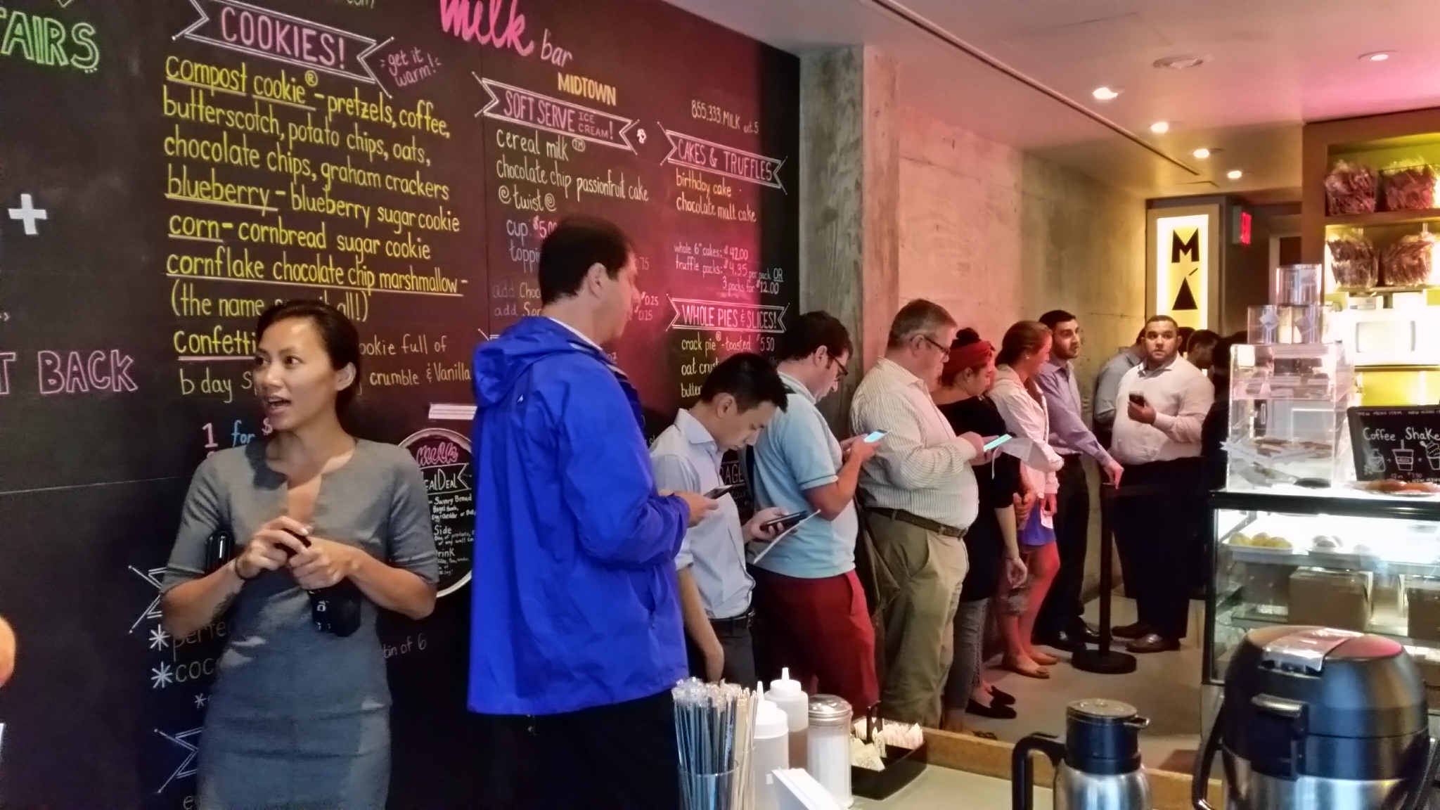 Just for you, dear readers, I actually decided to risk getting nut-punched and/or elbowed in the face and went inside. Milk Bar is still business as usual along the right hand side when you walk in, but all along the left side the line continued right up to the hostess stand.