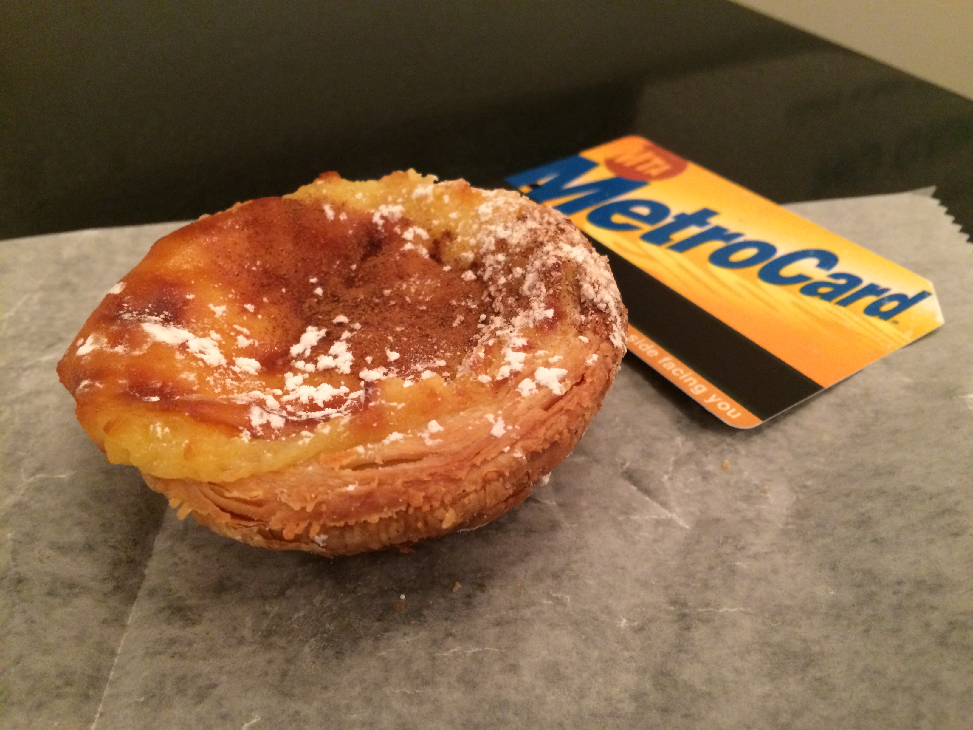 This was the most authentic one I’ve tasted in NYC. I learned they are made at a bakery in Newark (just like the bread for their sandwiches). The sweet, creamy custard is beautifully caramelized and held together by a crisp puff pastry-like cup. The only thing we need now is a bica (espresso).