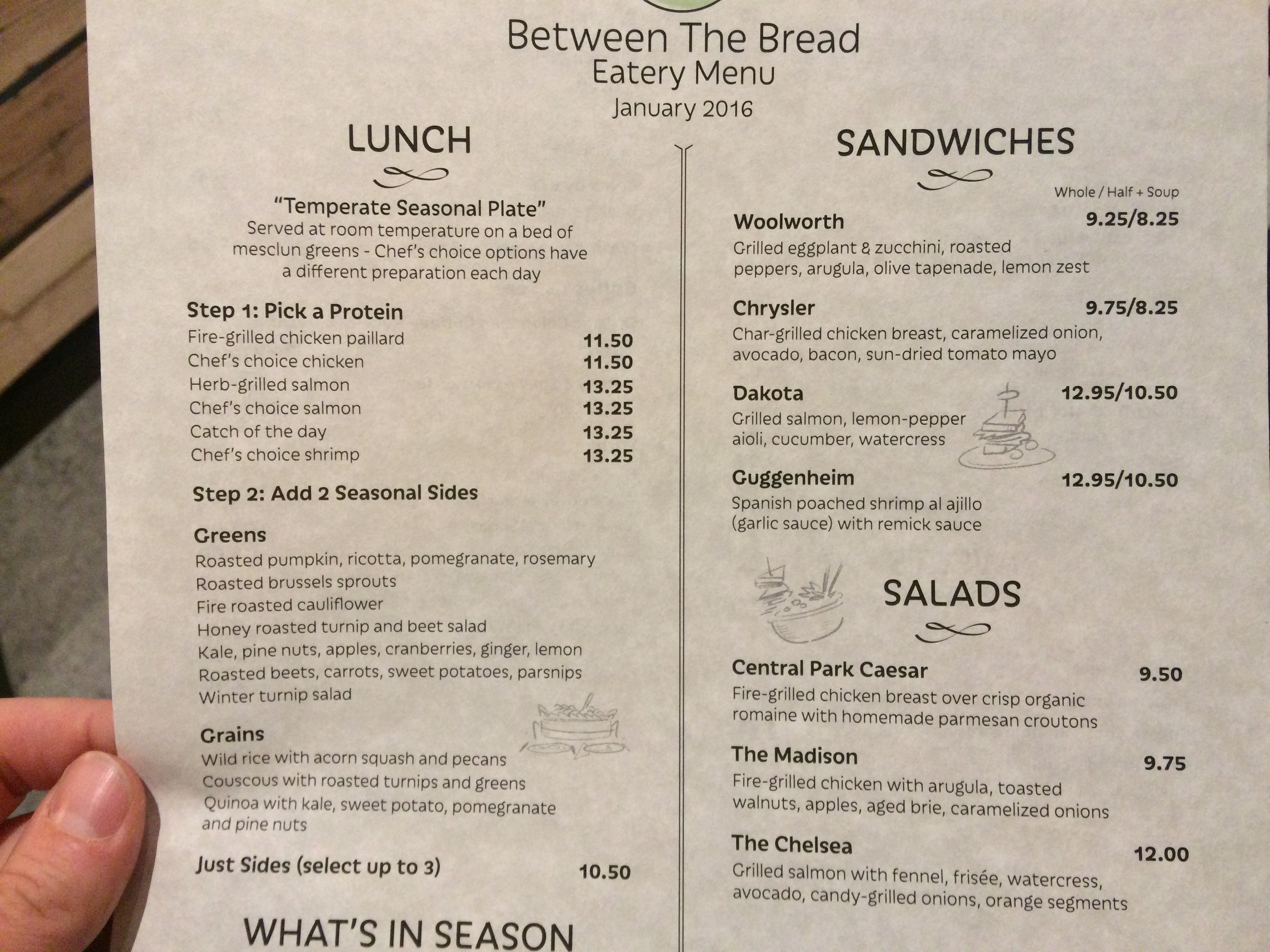 A new location of Between the Bread opened a few months ago next to Gregory’s Coffee on 40th Street. I never visited the Midtown West location, but Yvo was a fan despite needing an Amazon Local deal to afford it. I didn’t have any deal here either, but I figured I’d see if I could get something filling for remotely near the ML budget.