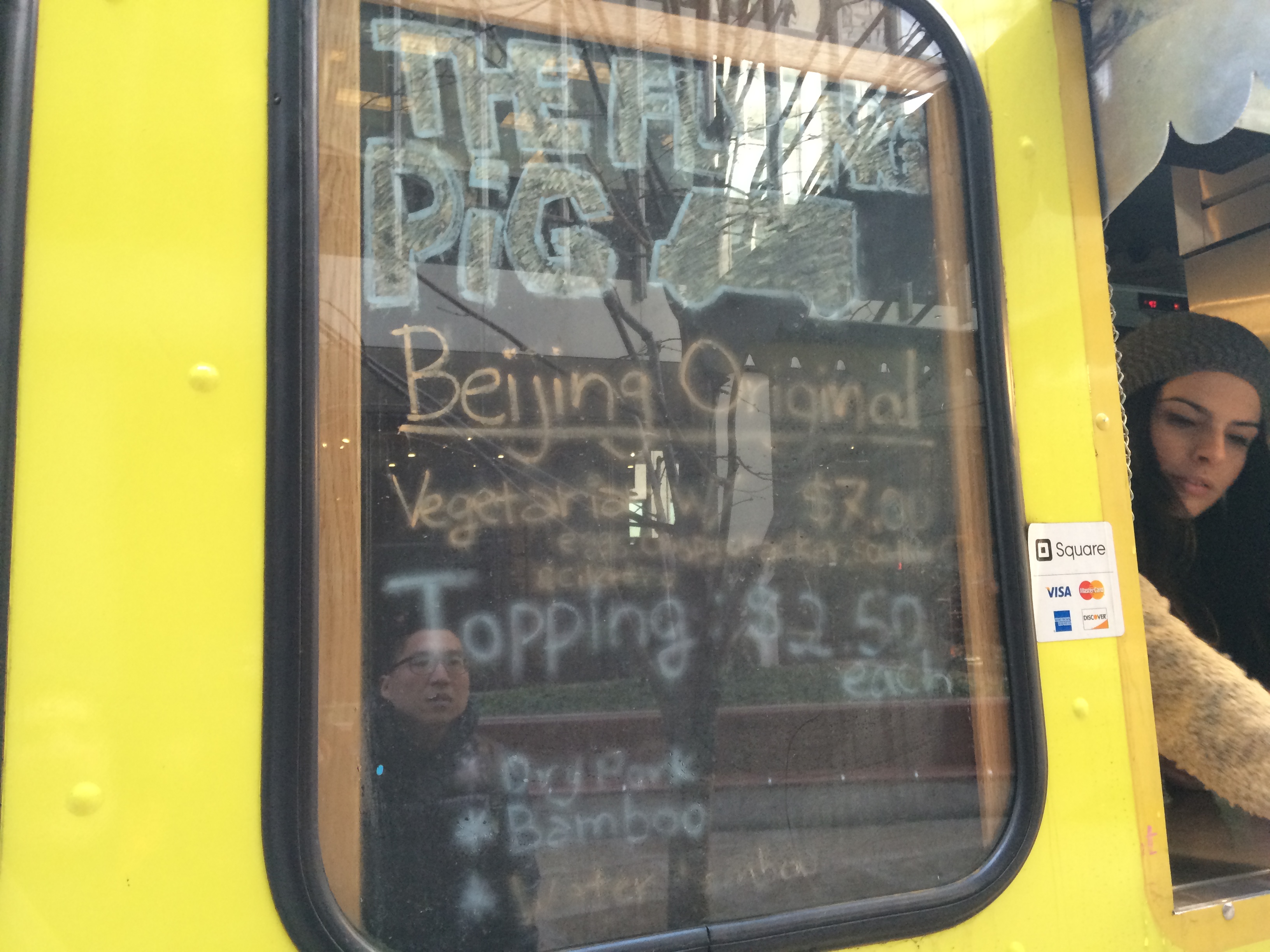 Last week I stumbled upon a bright yellow truck without much signage and no line parked on 52nd between 6th and 7th Avenue. It’s called The Flying Pig Jianbing and it was difficult to find a menu because they only do one thing.