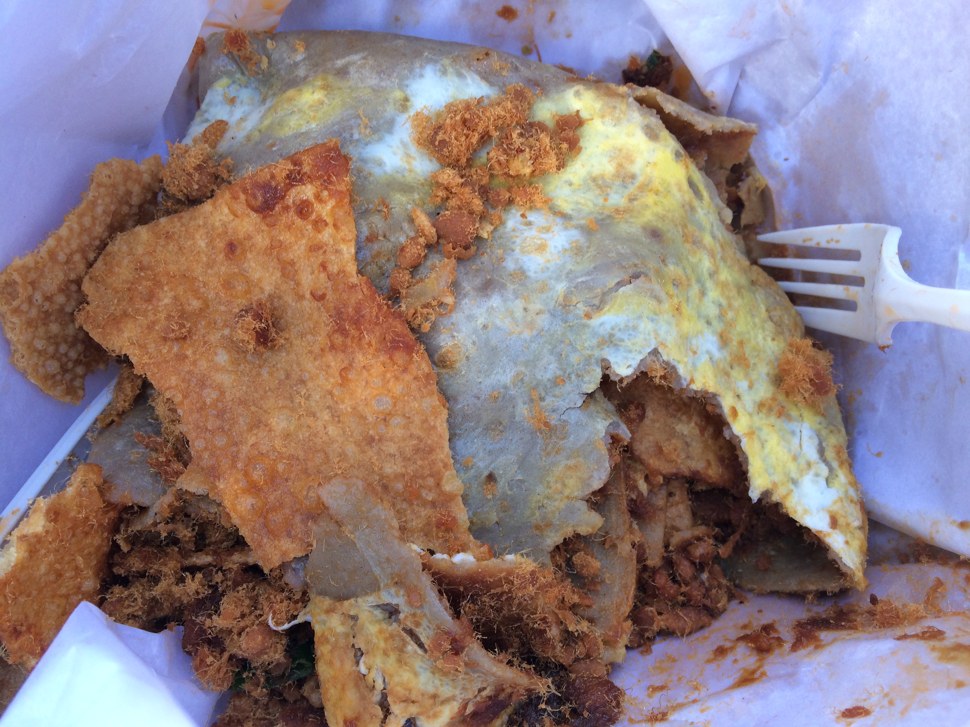 I ended up with a huge, thick crepe. The batter was incredibly thin and I could see egg bits throughout. This wasn’t going to be a hand’s on meal, so I’m pleased they included a fork and knife.