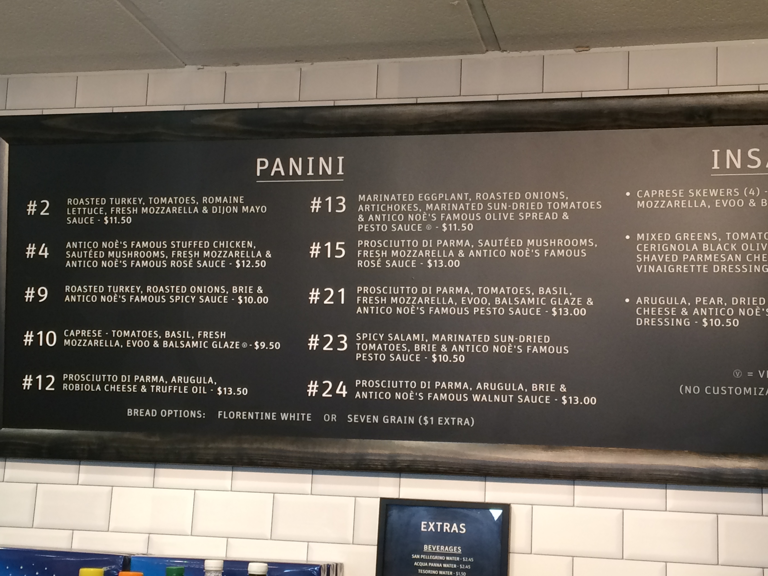 The original Florence location offers 25 different panini combinations and here they have brought over 10 of the most popular ones. That explains the confusing numbering of sandwiches and why there is a #12, but no #11.