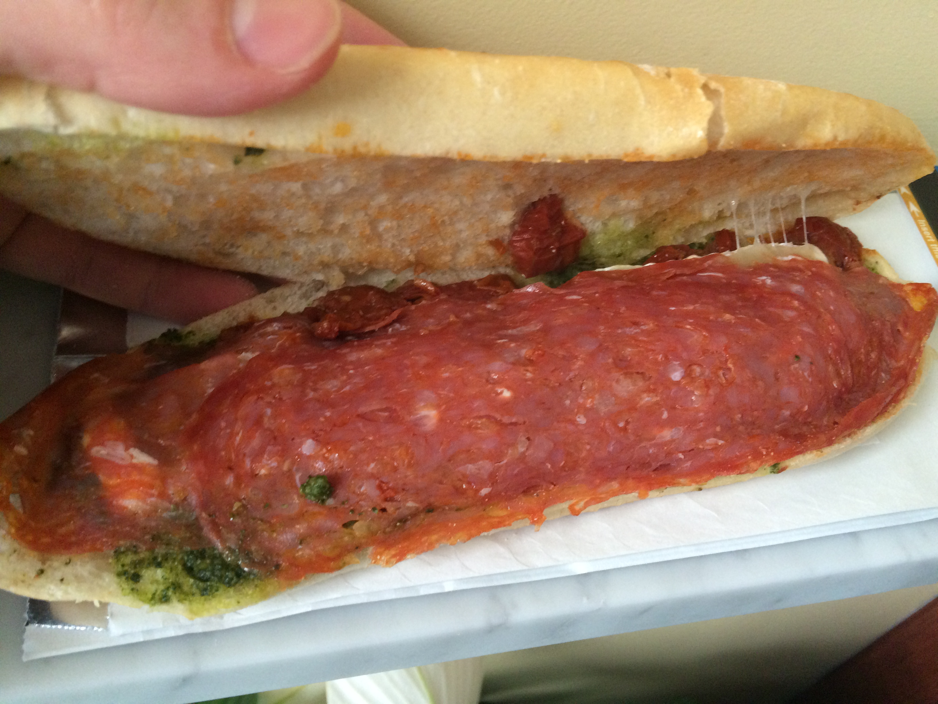Most of the sandwiches are a bit out of the ML $10 budget, but some are close. I asked the cashier for her recommendation between two and she emphatically said that the #23 was her favorite and since it had spicy salami and was one of the lower priced ones, I didn’t have to think twice.
