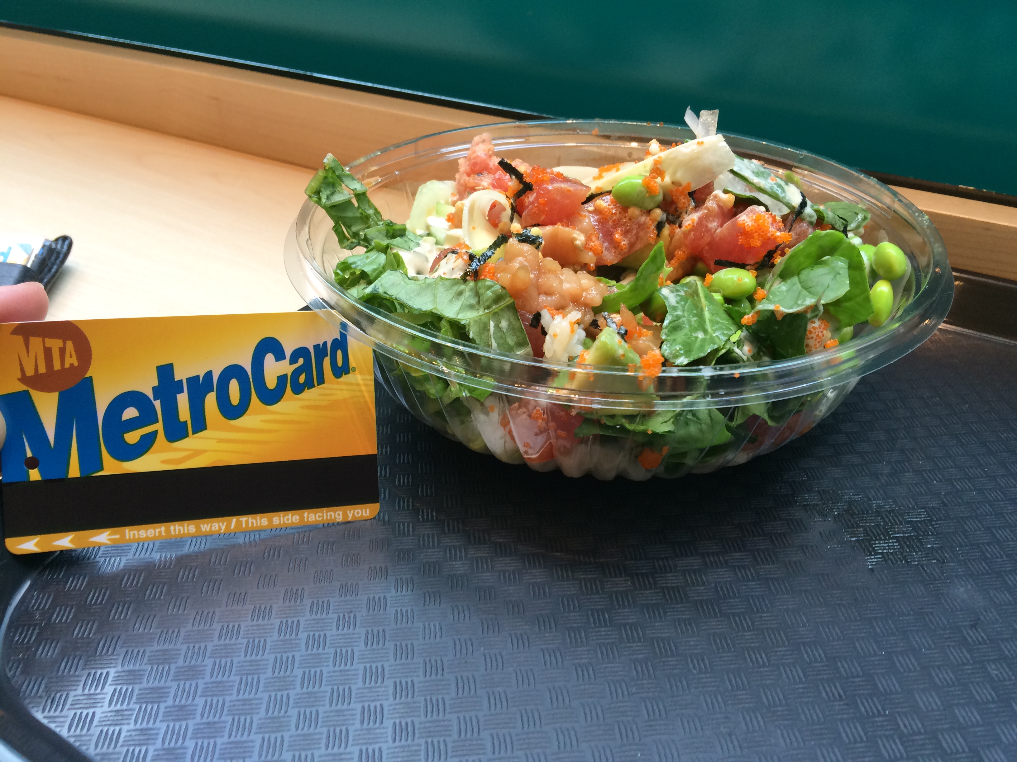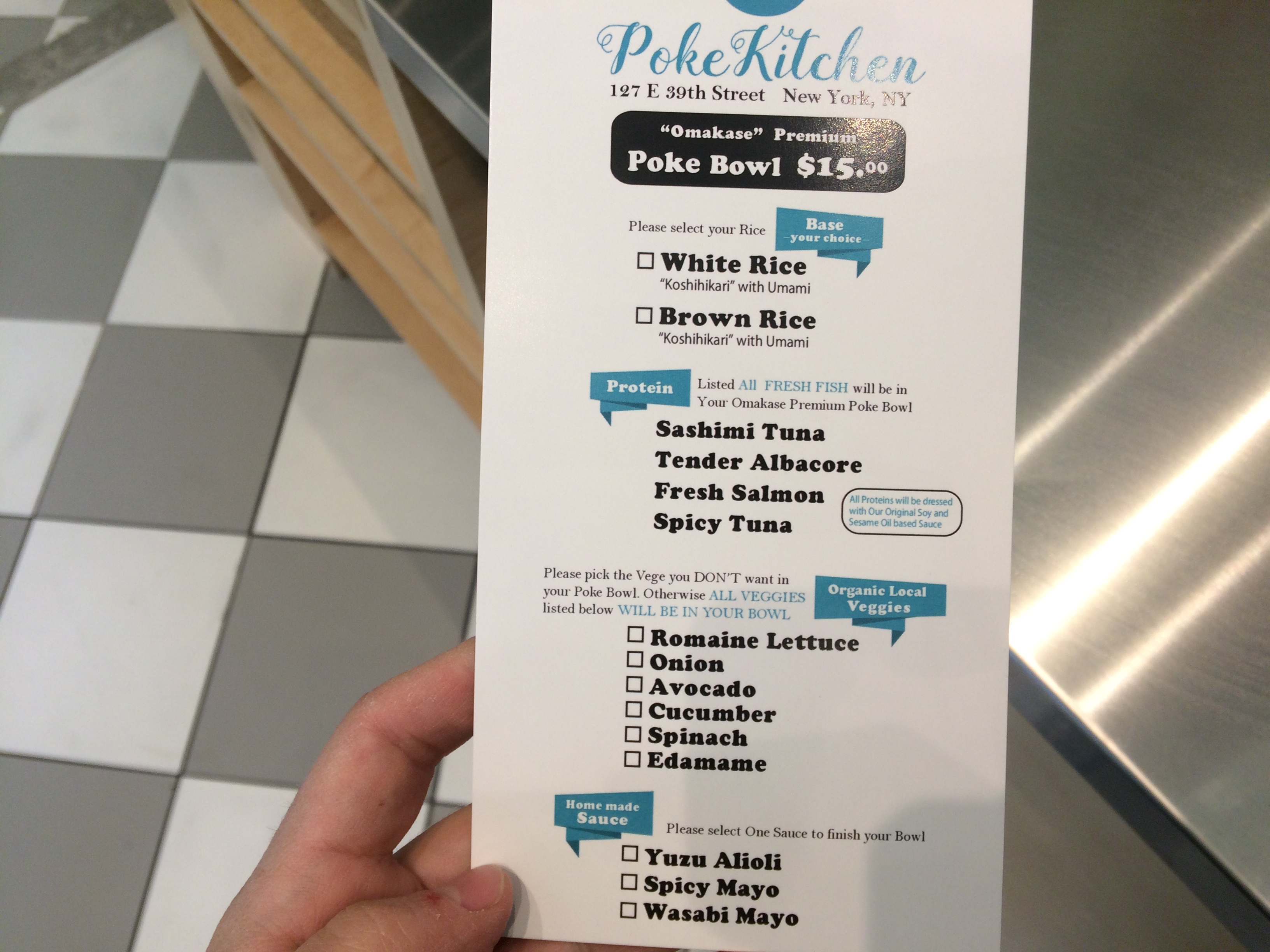 It opened last week and is called Poke Kitchen. I stopped by in their first few days open and I had a very strange experience. I was the only person in the restaurant. Considering it’s set back a little bit on quiet East 39th Street and then up a set of stairs, I wasn’t overly surprised. The only other people in the space were the employees and people who must have been the owners. They were checking out the exterior and watching my every move.