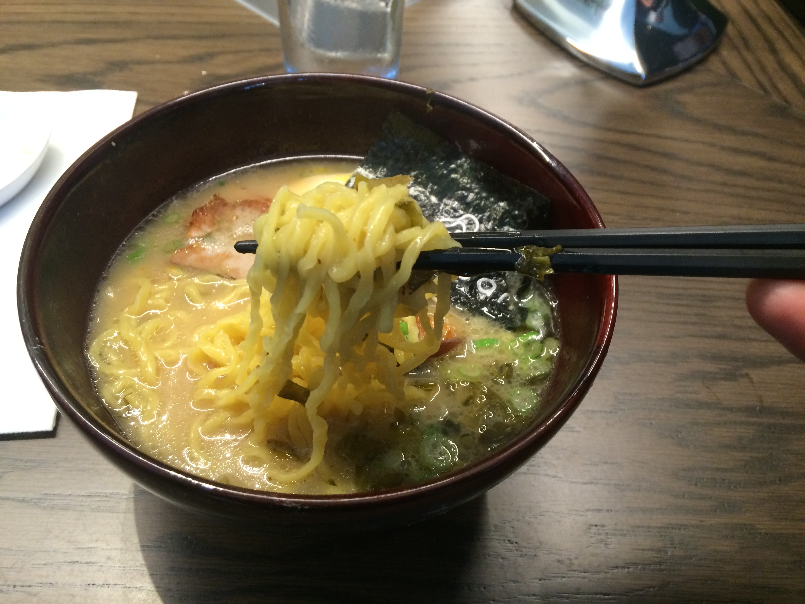 I chose the traiditonal tonkotsu and I was pleased with the portion size. The broth had good flavor – super garlicky and salty. The pork chashu was sliced very thin (almost like bacon) and had an earthy peppery flavor. The noodles were expertly cooked – as springy as you’d expect.