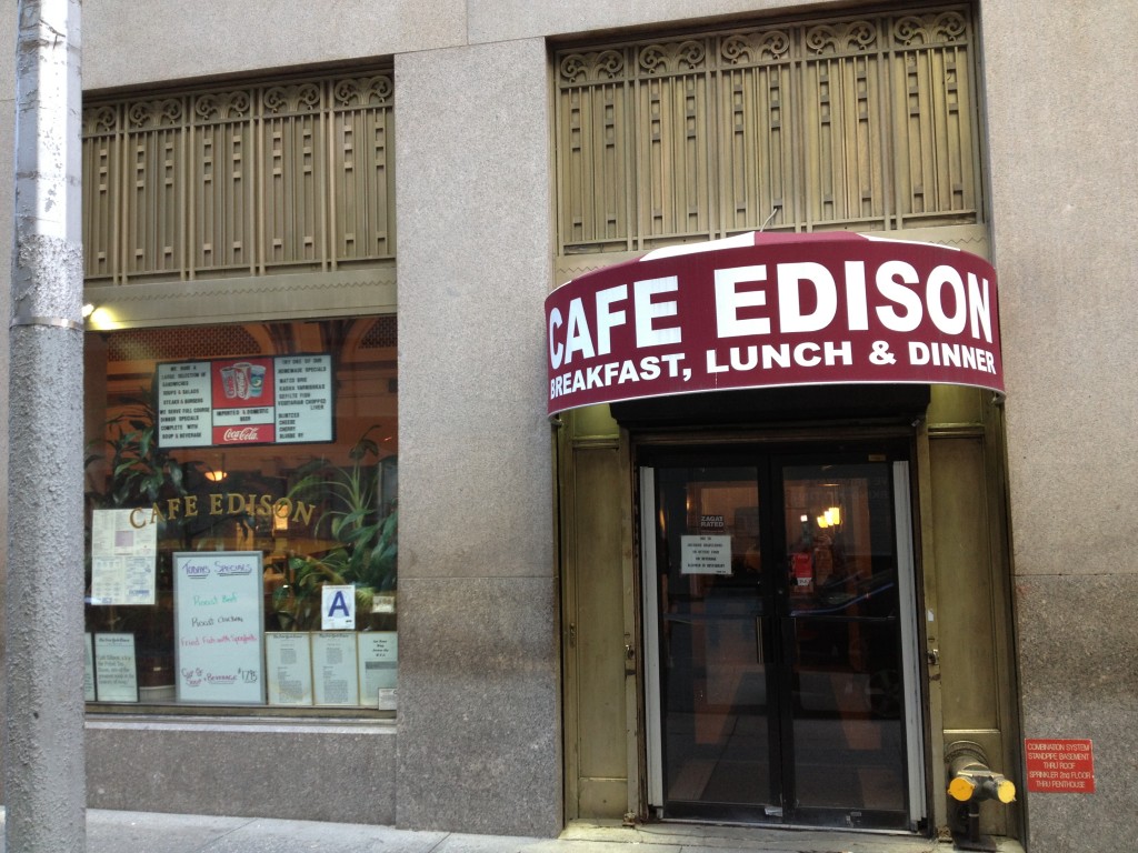 Tonight is Rosh Hashanah (the Jewish New Year), and if you don’t have your Mom in town to cook for you (mine is flying in this morning), then you may want to consider Cafe Edison for lunch. I don’t eat at too many sit down restaraunts, but they don’t have good matzoh ball soup at too many places that specialize in quick lunches. Luckily Cafe Edison, despite being a sit down diner, is cheap enough (the prices probably haven’t changed in 20 years) to be included as a bonafide Midtown Lunch.