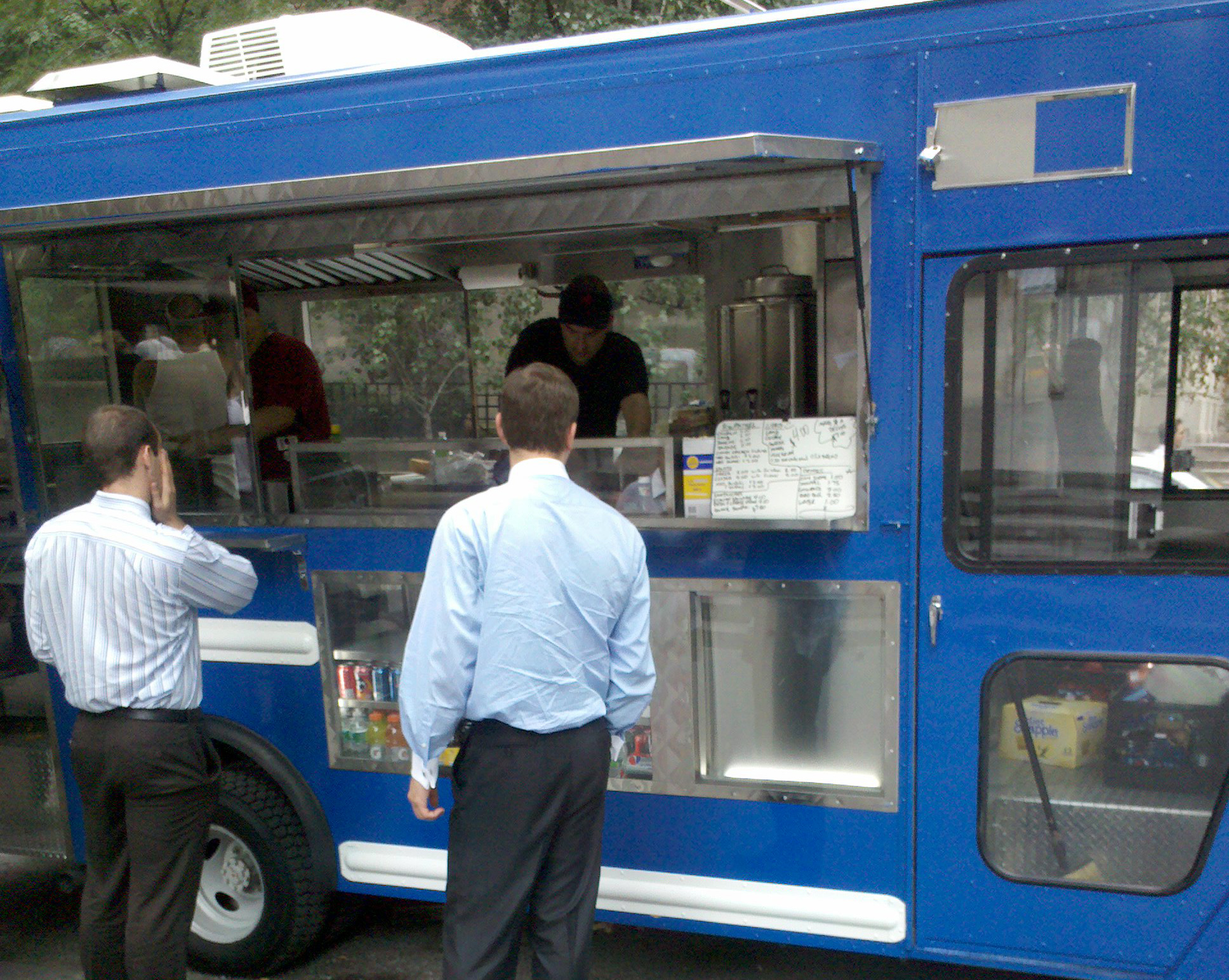 The Kosher Oasis cart, which appeared briefly back in December on 44th & 6th, reappeared earlier in the week on the SW corner of 47th & 6th. I stopped by yesterday to sample their menu of schnitzel, falafel, hot dogs and hamburgers, and they had disappeared once again. If you spot this cart, let us know in the comments (can you believe they’re not on twitter yet!?!) I did discover the other day that they are owned by the same people who own the Brooklyn location of Burgers Bar. I had never heard of it, but apparently it’s a very large Israeli hamburger chain which has a few locations here in NYC. Anybody ever been? If it’s good, it might bode well for the burgers from this cart… that is, if it ever returns.