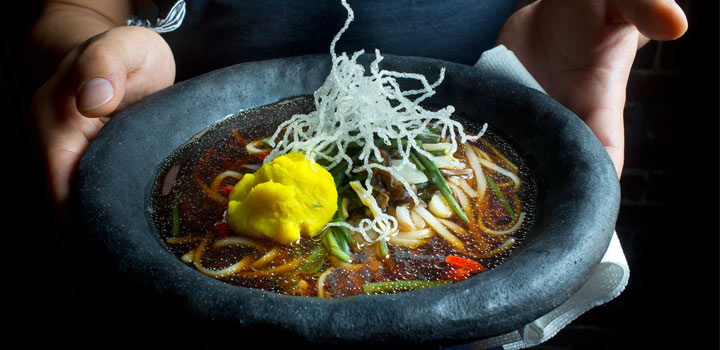 During our first look at Ippudo Westside last July, we mentioned that Ippudo would be offering vegetarian options in the future, and the day has finally come! In the main dining room (not the secret upstairs, we had mentioned back in July), Ippudo Westside is now offering hot and cold special “Shojin” ramen ($18) made with koshihikari rice noodles. According to the Tasting Table, the shojin ramen, which is also gluten-free, contains gentler flavors including a base-broth composed of soybean and seaweed, and toppings such as Japanese sweet potato, chestnuts, Chinese wolfberry seeds, and a rotating cast of seasonal specials.