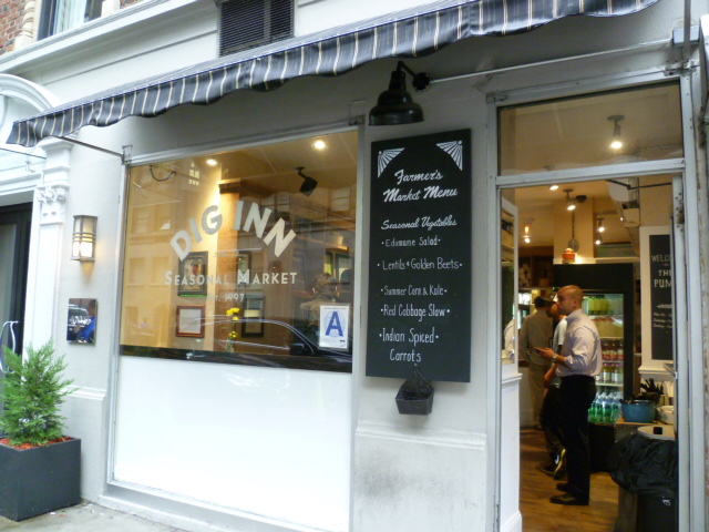 Pump Energy Food on 55th Street has undergone a lot of changes in the last year or so. In addition to a complete renovation back in January, they just changed their name to Dig Inn, which is a pretty lame pun and doesn’t really say much about the food or the atmosphere. This type of healthy food is rarely on Midtown Lunch’s radar, but Brownie visited it before the name change and, most recently, I found myself walking by one Friday afternoon so figured I’d check it out to see if anything was worthwhile.