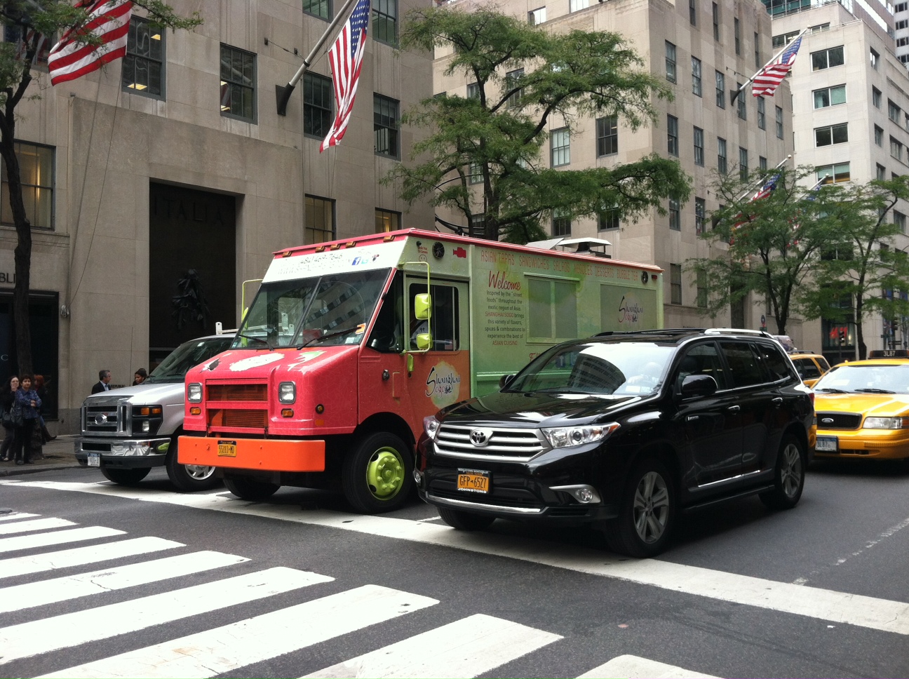 A few weeks ago, while perusing the trucks parked on 46th between 5th and 6th Avenue, I noticed the Shanghai Sogo truck. Midtown Lunch briefly mentioned it back in October, but hadn’t had a chance to sample the wares… until now.