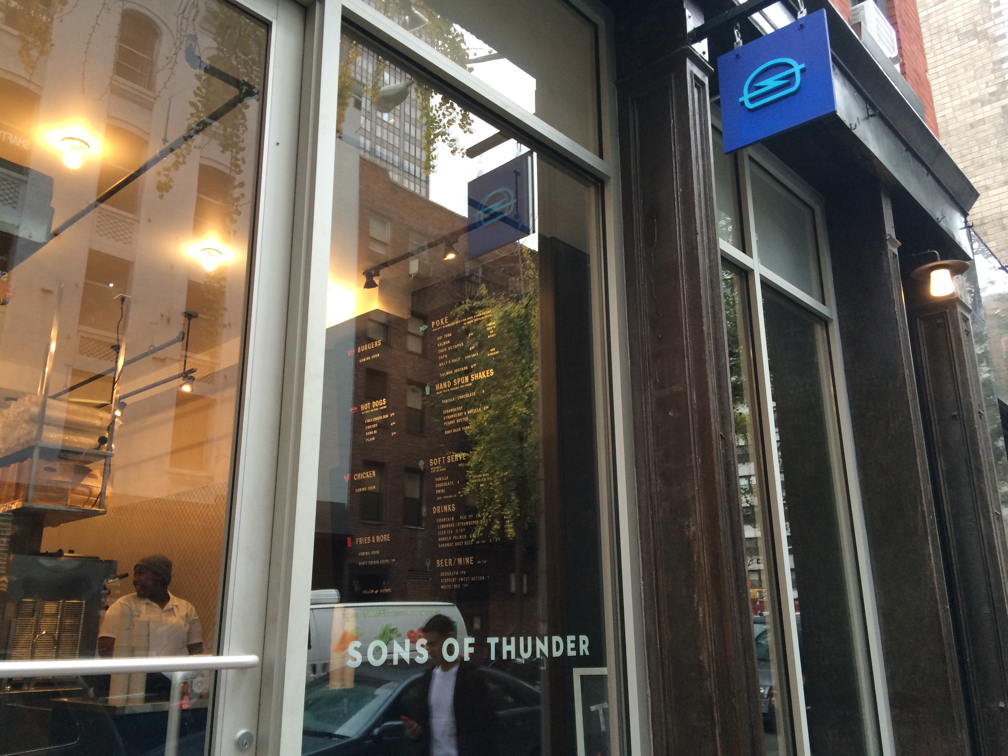 Walking into Sons of Thunder, I sensed a bit of Shake Shack style. The brand new, slightly out-of-bounds burger joint seems poised to expand with a beach shack vibe. But unlike Shake Shack, the burgers are not quite ready to go (they’re waiting on their gas) and the day I visited, there was nobody inside the place.