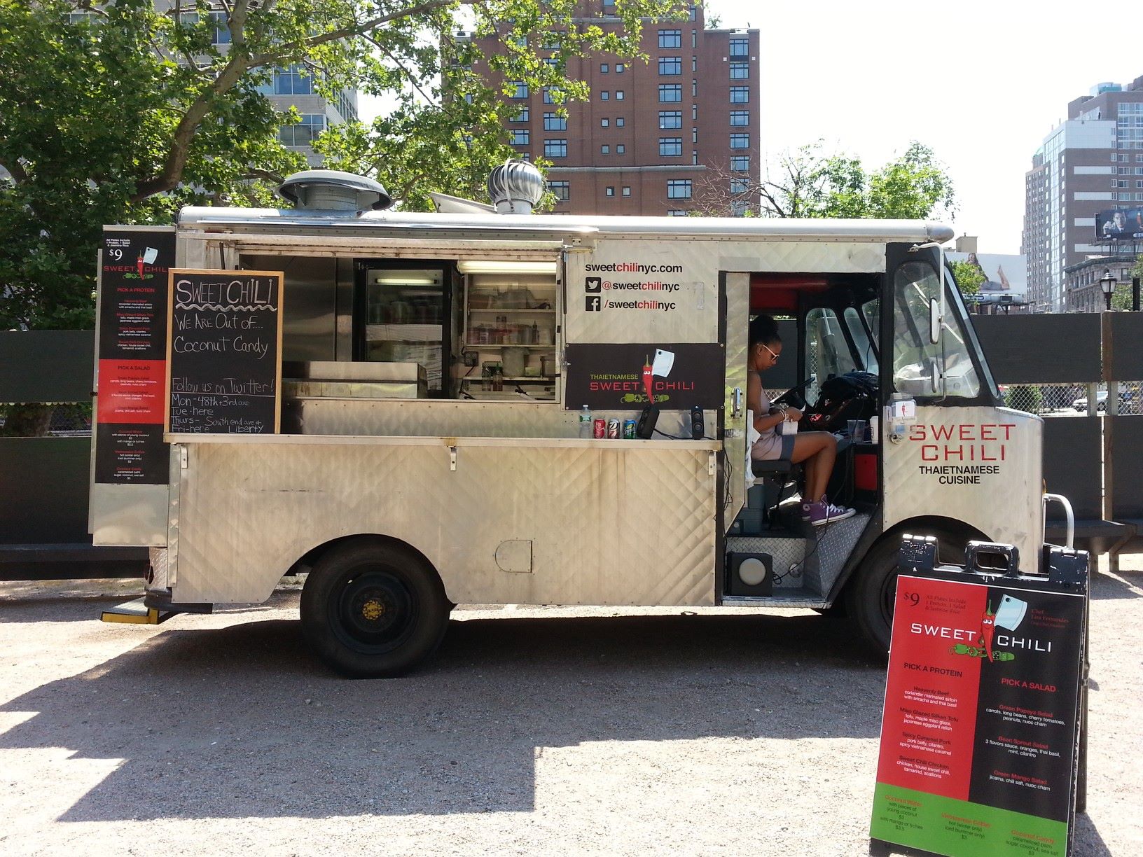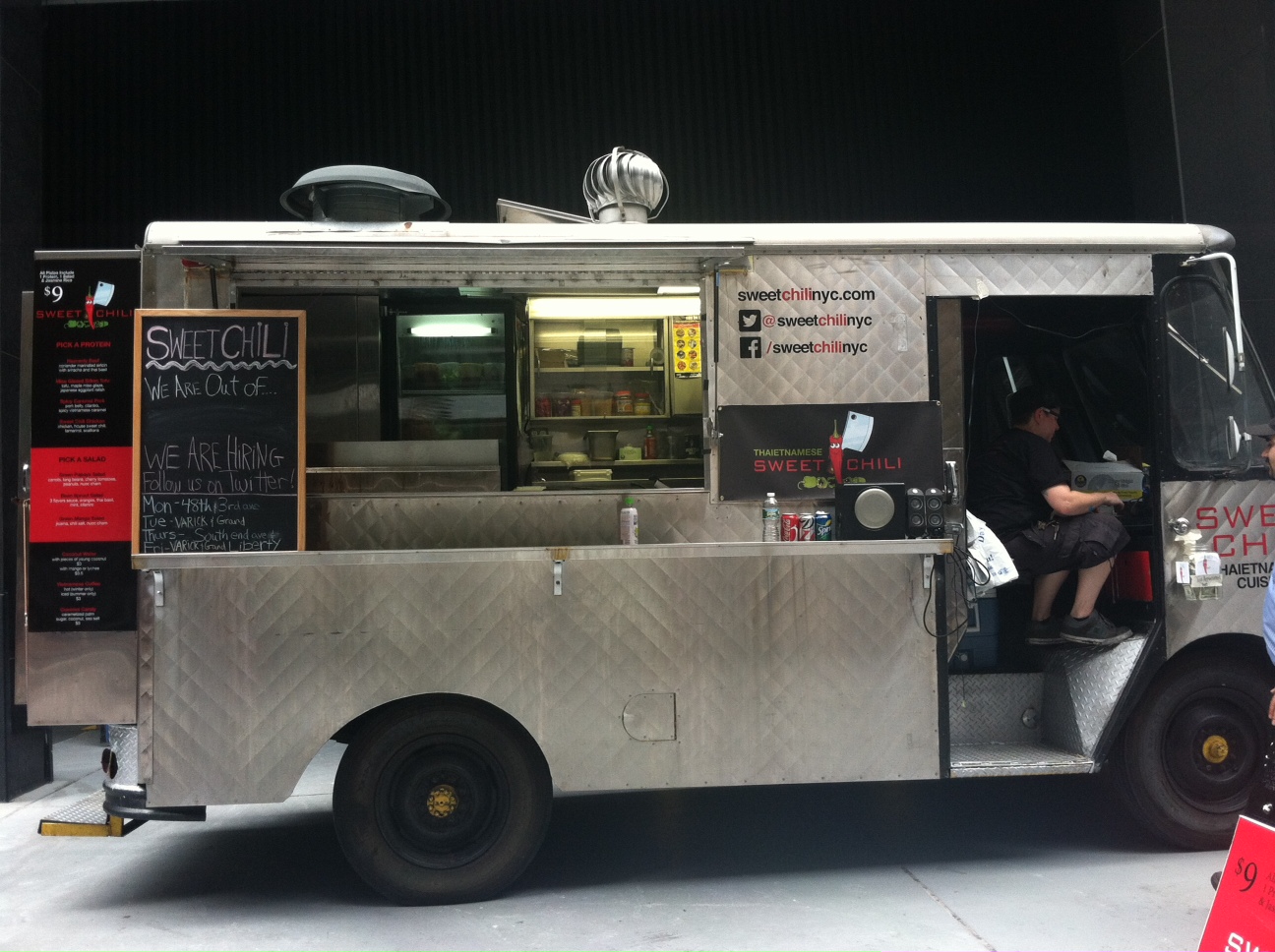 Last week, Brian reported that Sweet Chili, the new food truck run by Lisa Fernandes, finalist of Top Chef Season 4 (Chicago), was parking at the loading dock of 777 3rd Avenue (at the corner of 48th and 3rd) every Monday. Since I’m pretty much at the loading dock of 777 3rd Avenue all the time now for the Mamu Thai Noodle Truck and the Old Traditional Polish Cuisine Truck, I knew the loading dock wouldn’t let me down with Sweet Chili!