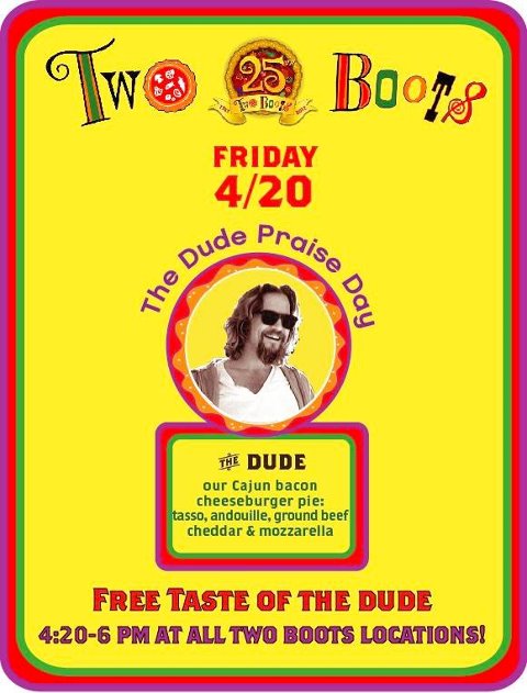 Now, I’m sure some of you “smart” “observant” people, who don’t walk around with your “head up your ass” might be saying to yourself- “Gee Zach… what are you an idiot?” And to that I say, “Yes. Yes I am.” Alright, so I’m not that quick. I’ve gotten pizza from many of the various Two Boots locations around the city, and in all that time I never really noticed the Po’Boys or Jambalaya on the menu painted on the wall… just the pizzas in the glass case.