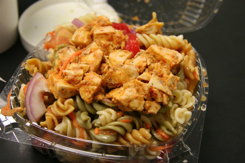 The cajun chicken was definitely better than I expected. The chicken was tasty and actually spicy. The tricolor noodles were mixed with shredded carrots, red onion, and red pepper, which were all very nice. Unfortunately, there were also a few chunks of unripe, inedible tomato. I just picked them out, but I wish they hadn’t been there in the first place.