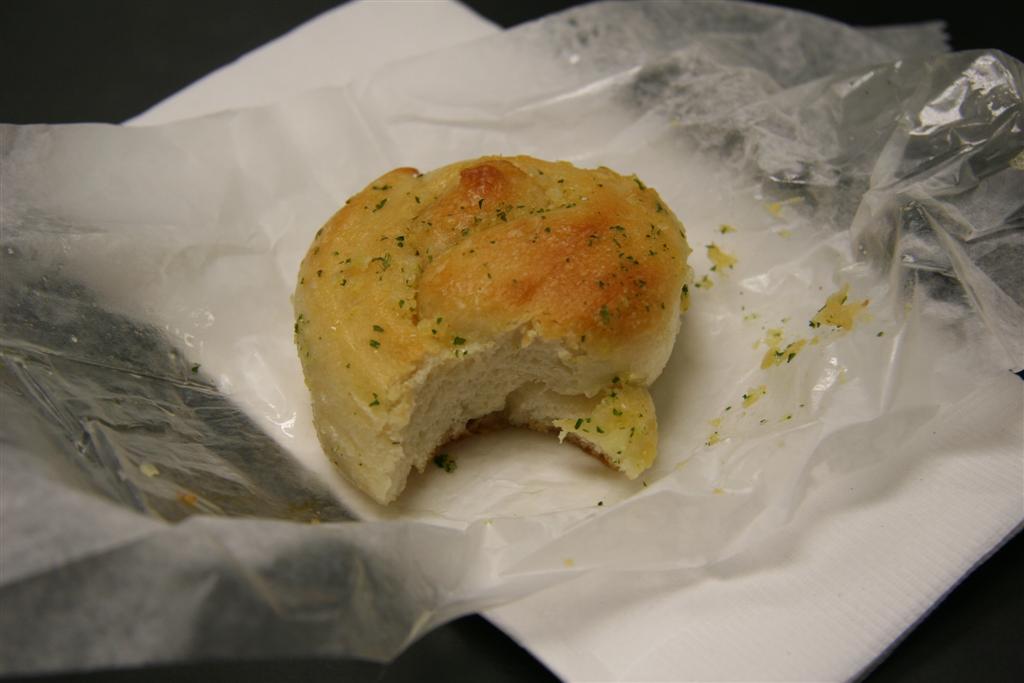 This knot was actually less disappointing than usual, as it was still soft and relatively warm. It wasn’t very good, though, and holy crap was it greasy. It basically seemed to be made out of butter. I took about two bites and then was done. If you’re a garlic knot fanatic, you might enjoy it, but I didn’t really care for it.