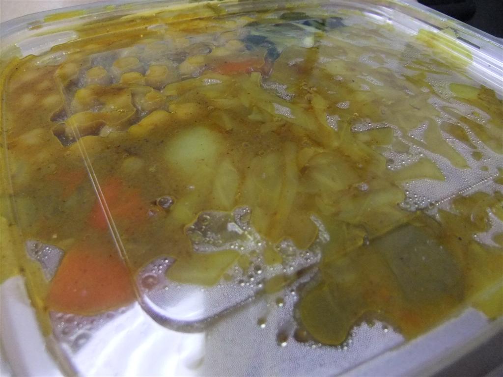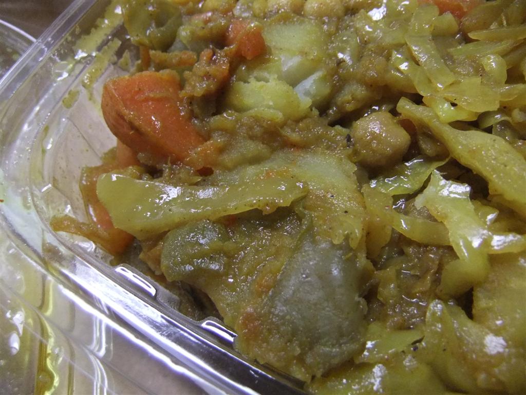 In this corner,we’ve got mixed vegetable curry. It’s made up of carrots, potatoes, green beans, and onions in a nice, mildly spicy curry sauce. It was quite good, but was definitely the least exciting of the four.