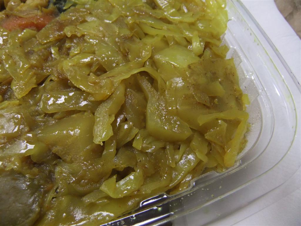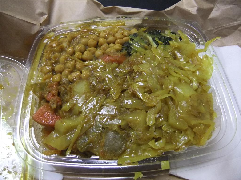 The last dish is stewed cabbage, and it gives the chickpeas a run for their money. It’s supremely tender, and the sauce is rich and buttery, but not at all greasy. It’s a very savory dish, and though it’s good on it’s own, it also provides a nice textural and flavor contrast to the rest of the combo.