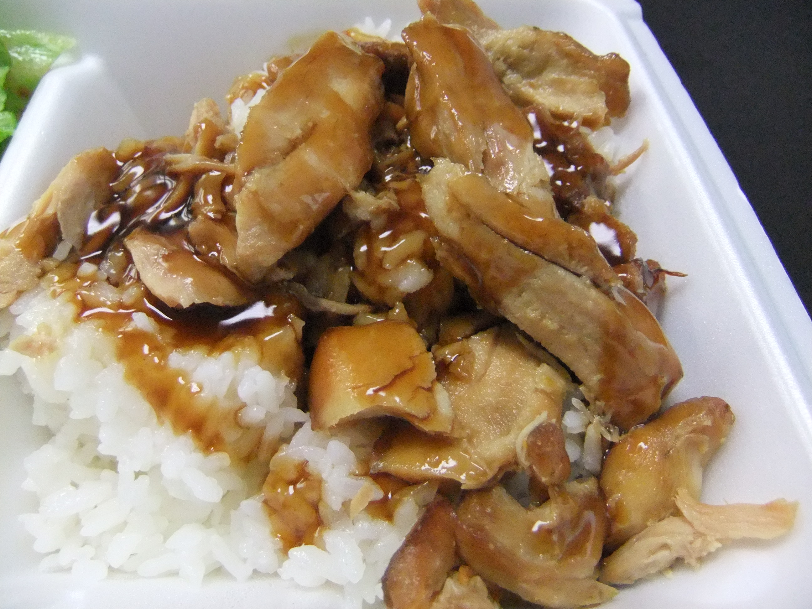 The chicken itself is great. It’s mostly dark meat, but good and flavorful dark meat that’s fat- and gristle-free, not just a bunch of stringy scraps. The sauce is very generic teriyaki, but I happen to like very generic teriyaki very much. It’s definitely on the sweet side, but not cloyingly so.