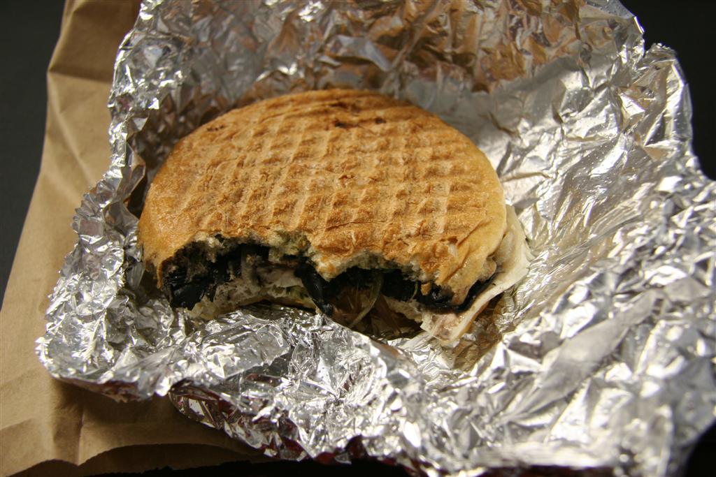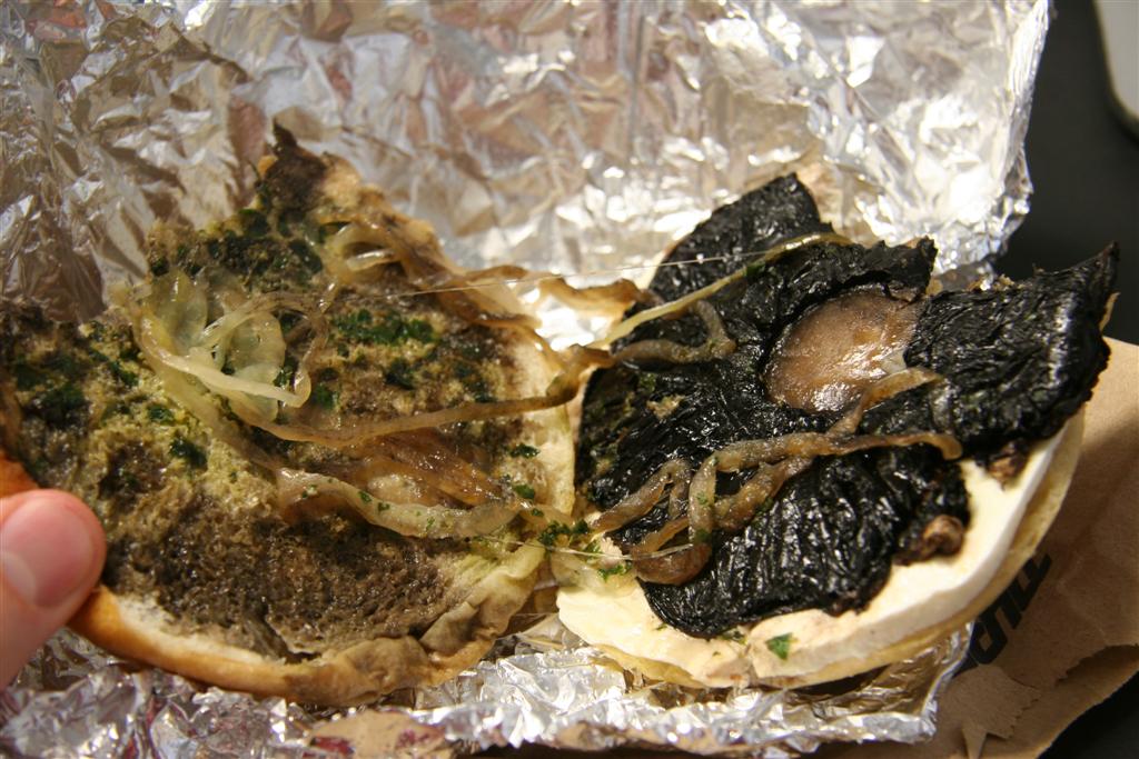 It’s a hot pressed sandwich with portabello, mozzarella, grilled onions, and pesto ($5.95), and it’s excellent. Just the perfect blend of flavors. It’s not huge, but it’s not tiny either, and hot sandwiches always seem more filling to me.
