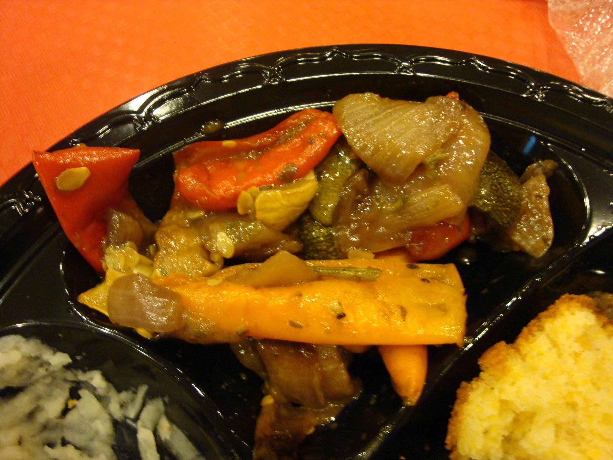 Those vegetables were surprisingly tasty (and coated with delicious oil, in case you’re concerned about getting too many nutrients), and the cornbread contained kernels of corn, meaning I got TWO forms of vitamins for the day.