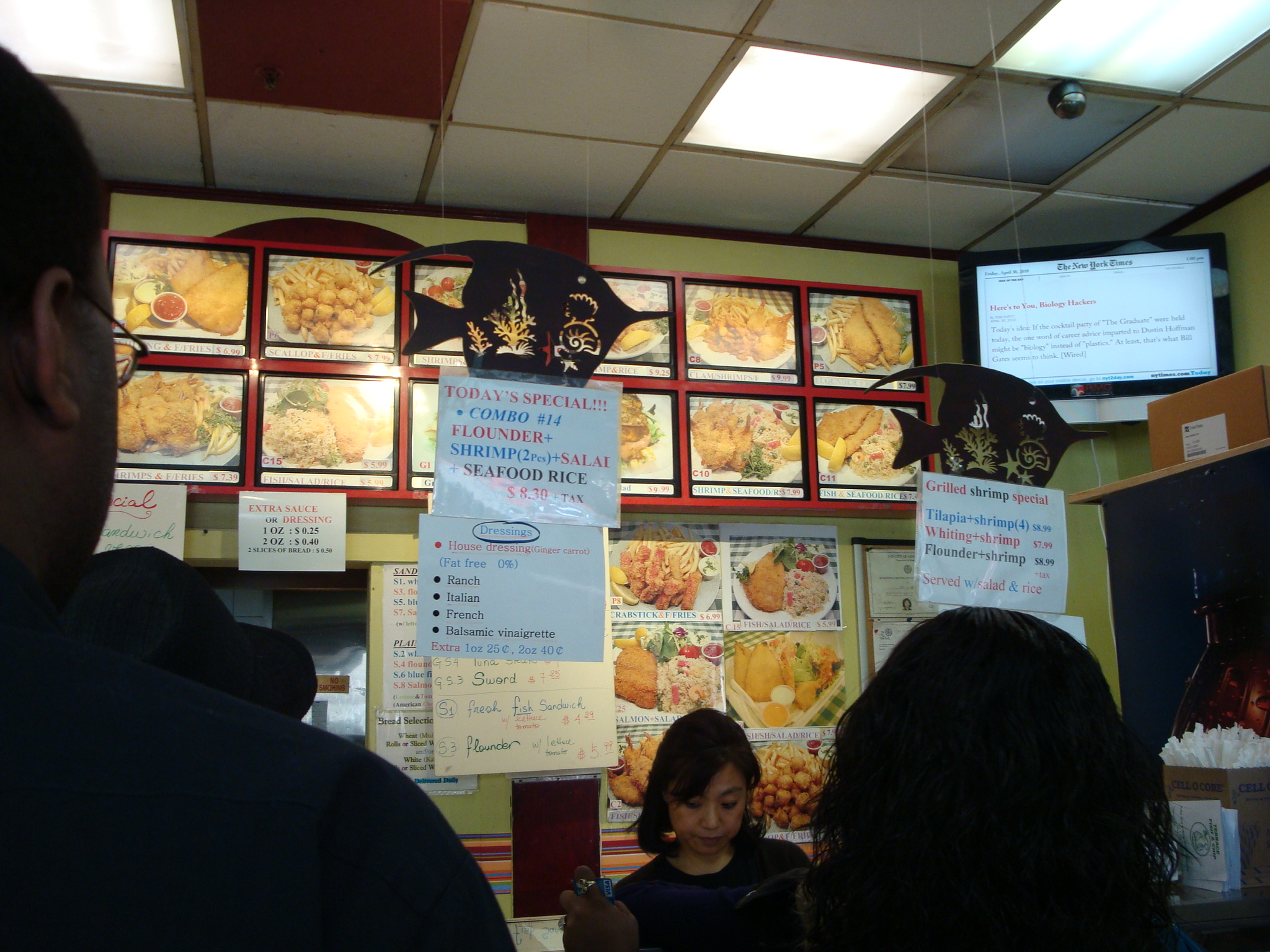 The space resembles a Chinese take out place that only serves fish and fried foods. If you don’t want to smell like oil for the rest of the day, I wouldn’t recommend eating in.