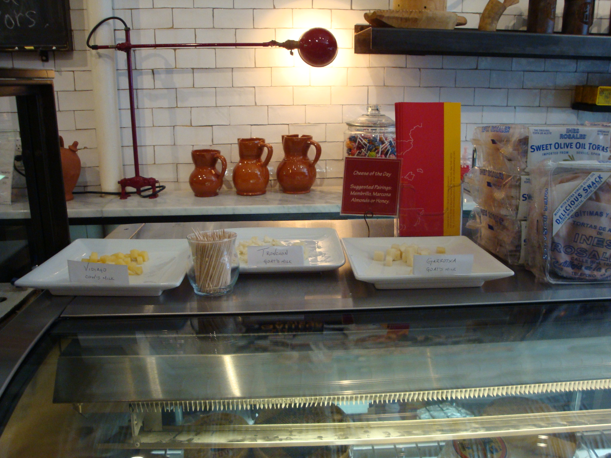 You have to walk to the back past a cheese and meat counter to get to where you order the sandwiches and tapas. To the left are all kinds of items imported from Spain for you to drool over as you wait for your food. There are about 17 sandwiches to choose, and I had a horrible time deciding which one to order because they pretty much all sounded amazing.