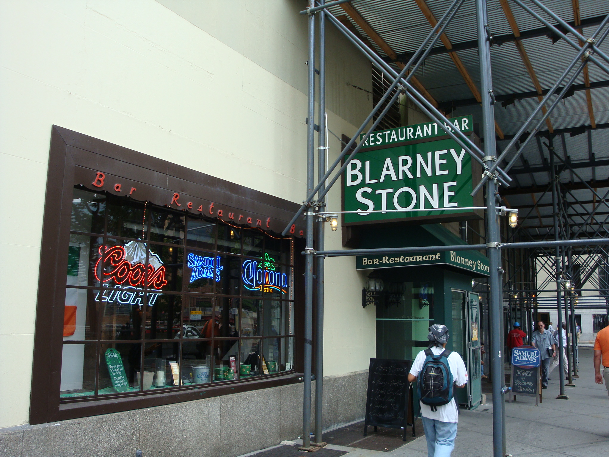 Most of the time I can ignore the meaty smell, but one day I just really wanted a greasy burger and fries for lunch. I thought about checking out the newish Go Burger Truck at the South St. Seaport (anybody checked this thing out?) but reviews have not been promising. So instead I went to the forums and saw that lunch’er boomshanka had listed a cheeseburger from the Blarney Stone on Trinity Place (btw. Exchange Pl. & Morris ) as one of his go-to lunches. I was doubly intrigued because while another Blarney Stone on Fulton St. recently closed, this one was featured a couple of months ago as the recipient of a make-over by some new reality show called “Construction Intervention” on the Discovery Channel.