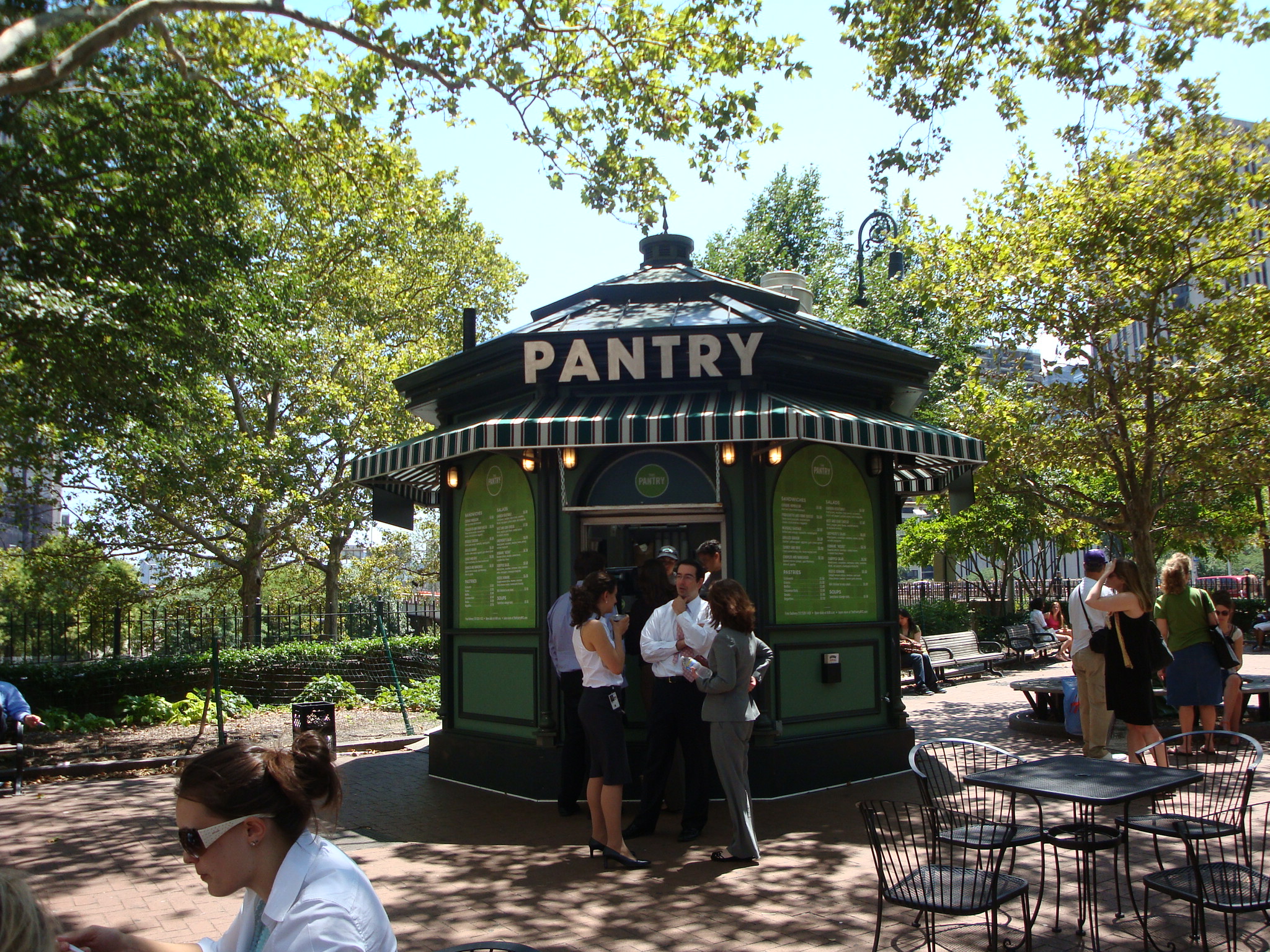 If you’re like me, you don’t really go to the area of Centre St. near City Hall unless you’re on jury duty, get arrested (I would imagine) or you work there and/or are defending someone in a court of law. The other option is that you are a tourist or just really like walking across the Brooklyn Bridge. One day after getting off the subway at the City Hall station, I noticed a couple of food kiosks had popped up in a weird triangular area at the base of the bridge. They were Choza Taqueria and The Pantry, and they make up half of the Open Air Cafe. Two other kiosks for Lucky Buns (not this kind, sadly, but burgers) and an Italian pizza and pasta kiosk called Sauced are on the opposite side of the massive 1 Centre St. building. I had originally ventured over to check out Choza’s tacos only to find the place closed. So I walked over to the neighboring Pantry to see what they had on offer.