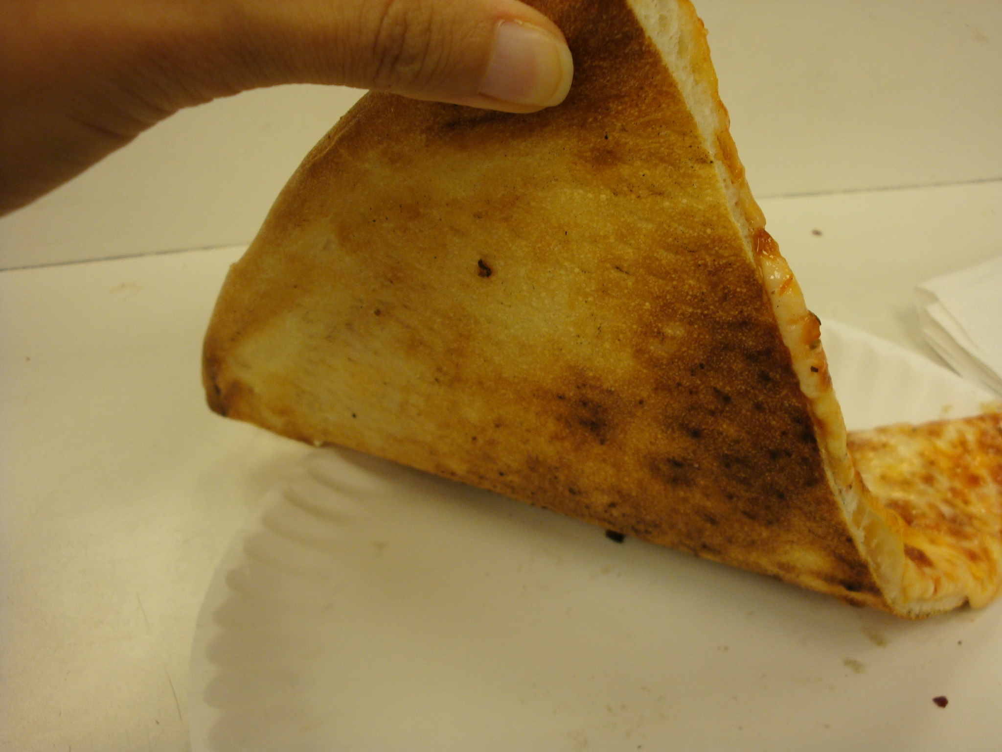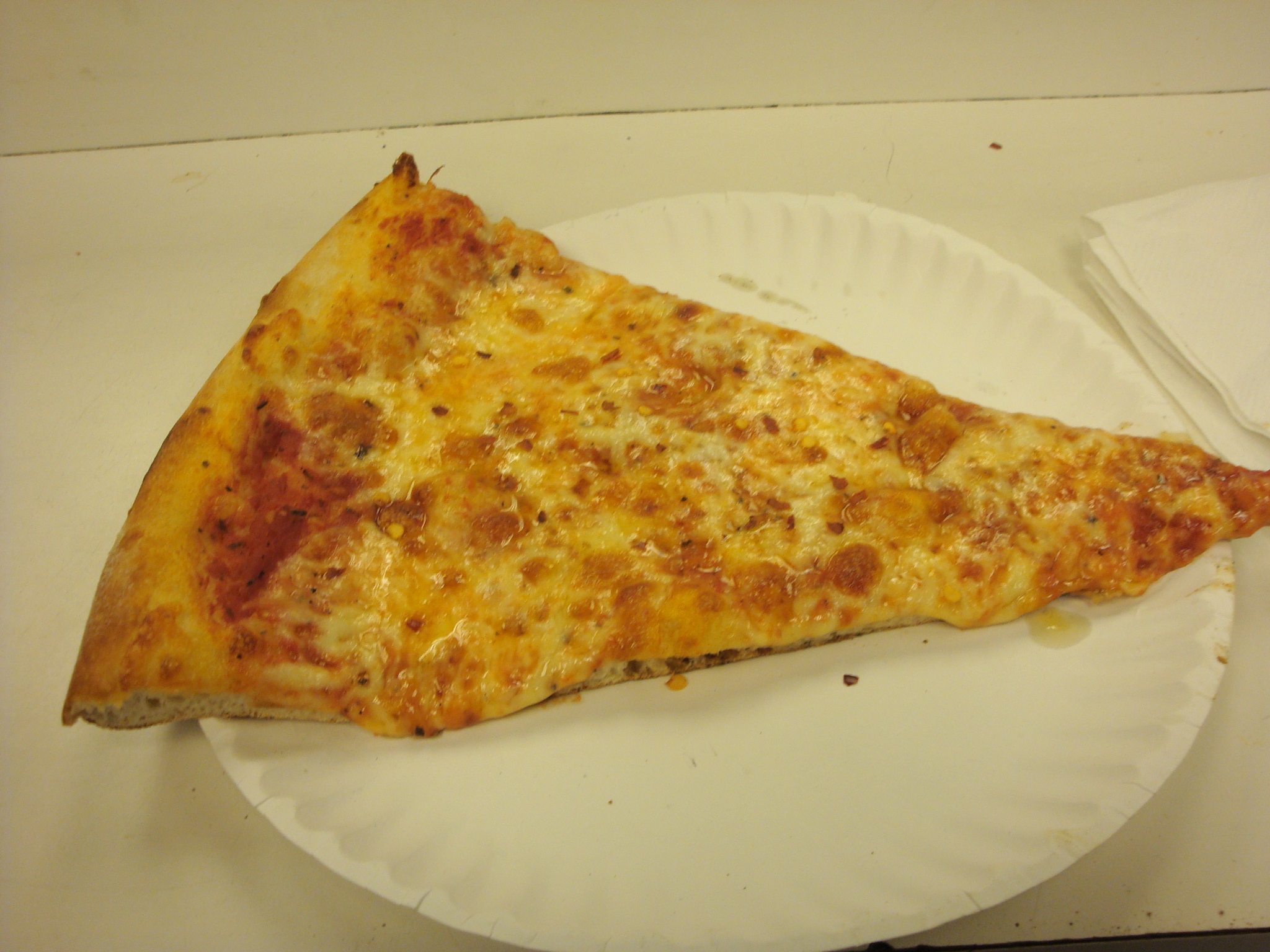 Enough of that walk down memory lane and back to Big Al’s. They already had a cheese pizza hot out of the oven, so I didn’t even have to wait for a reheat. The slice ($2.50) was fairly hefty and greasy, thanks to the liberal application of cheese. It was a regular NY slice, though, without a thick crust.