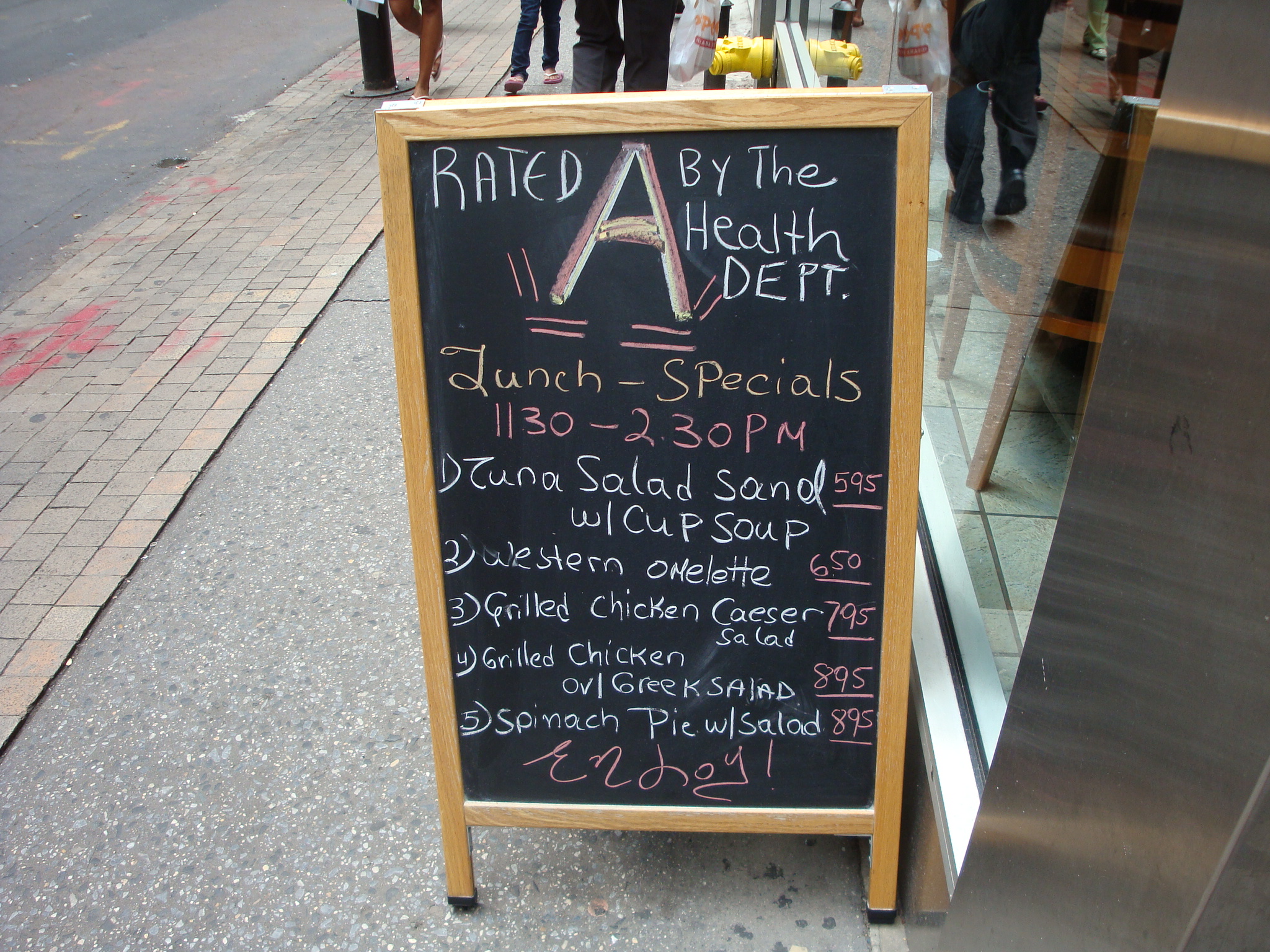 Favorite Kinds of Food: On the high end, really mundane ingredients done so well they surprise me. On the low end, all of the terrible chain restaurants from my hometown in Ohio that you can only find in Times Square here.