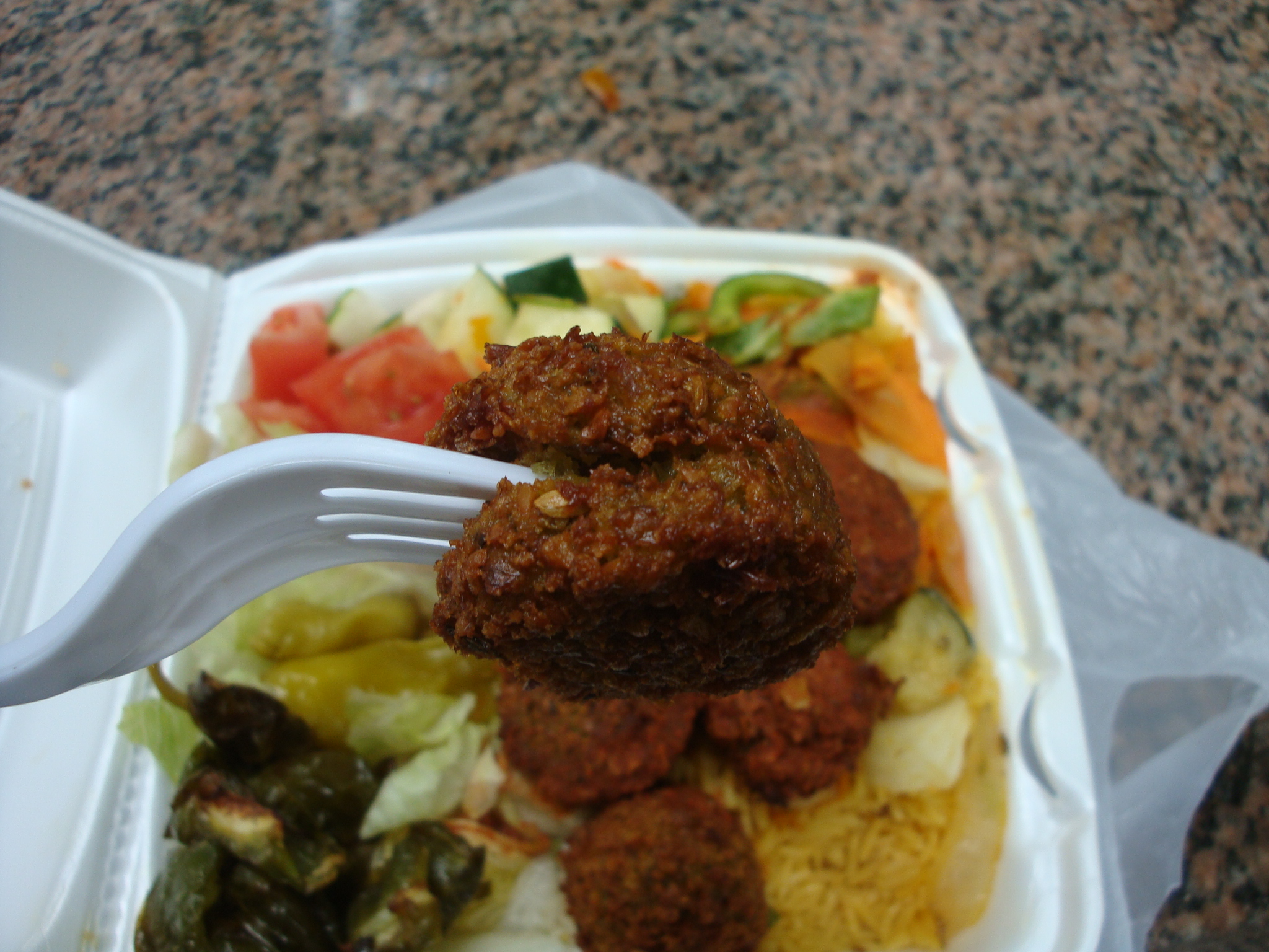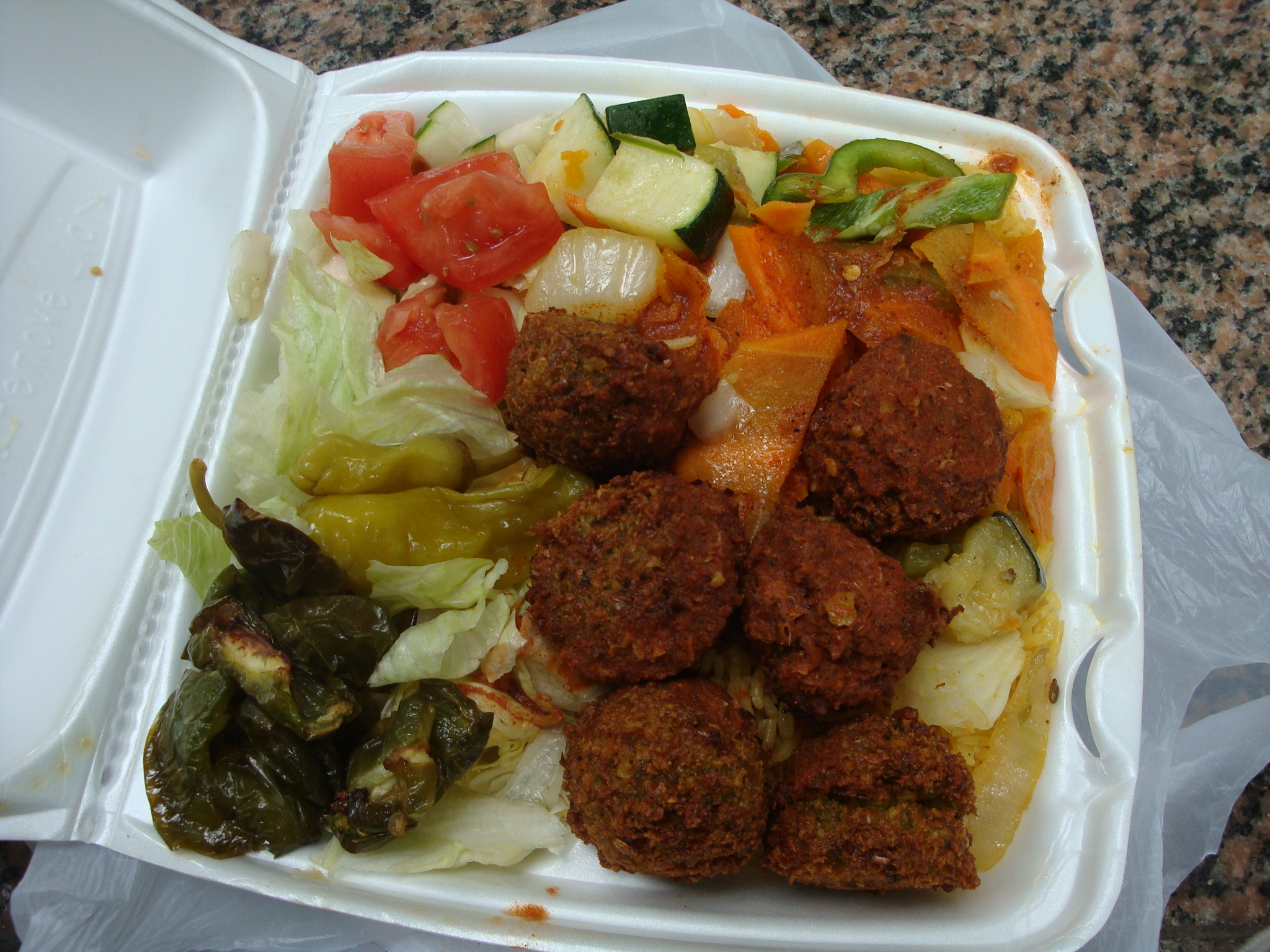 Those falafel were freshly fried and while they could have been a little crispier on the outside they had good flavor. I would eat these again, and I really liked the vegetables because they made me feel like I was stuffing something else in my body besides grease.