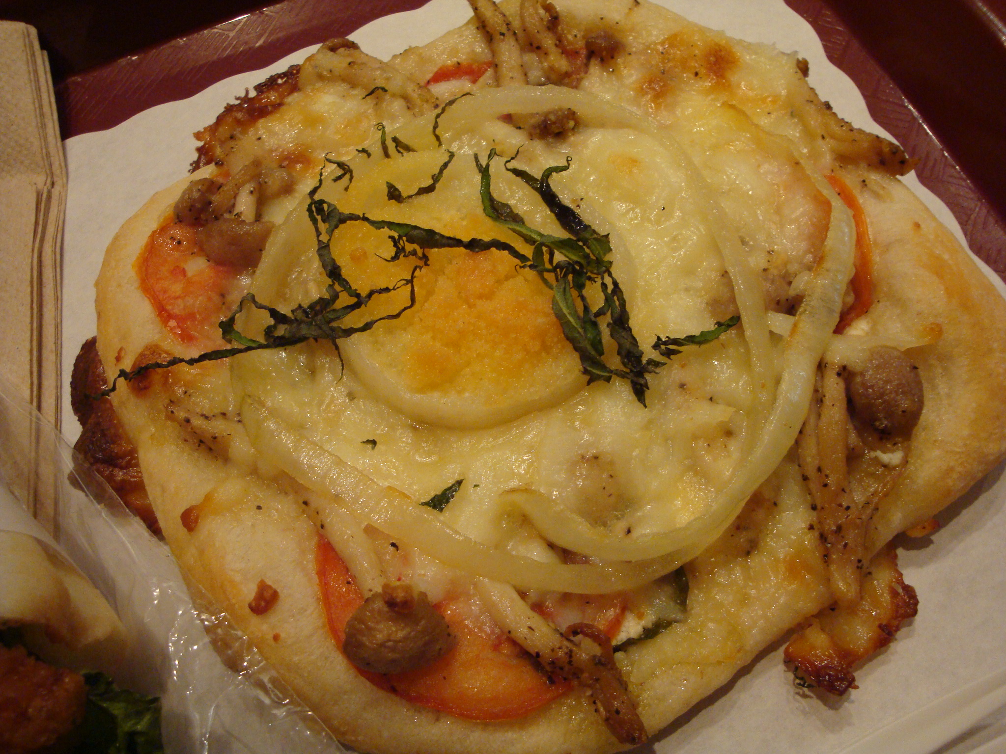 I tried to get photographic evidence of this, but there are more vegetables and stuff between the cheese and crust. I guess it’s like the Japanese version of stuffed pizza, but with a thin crust?