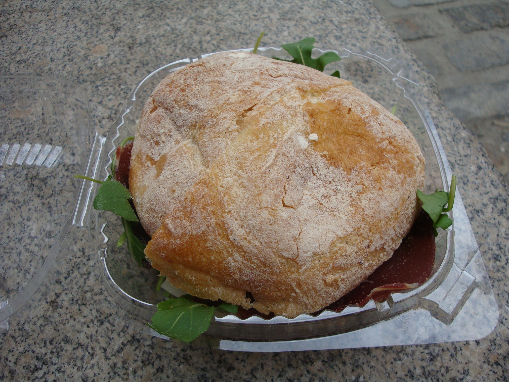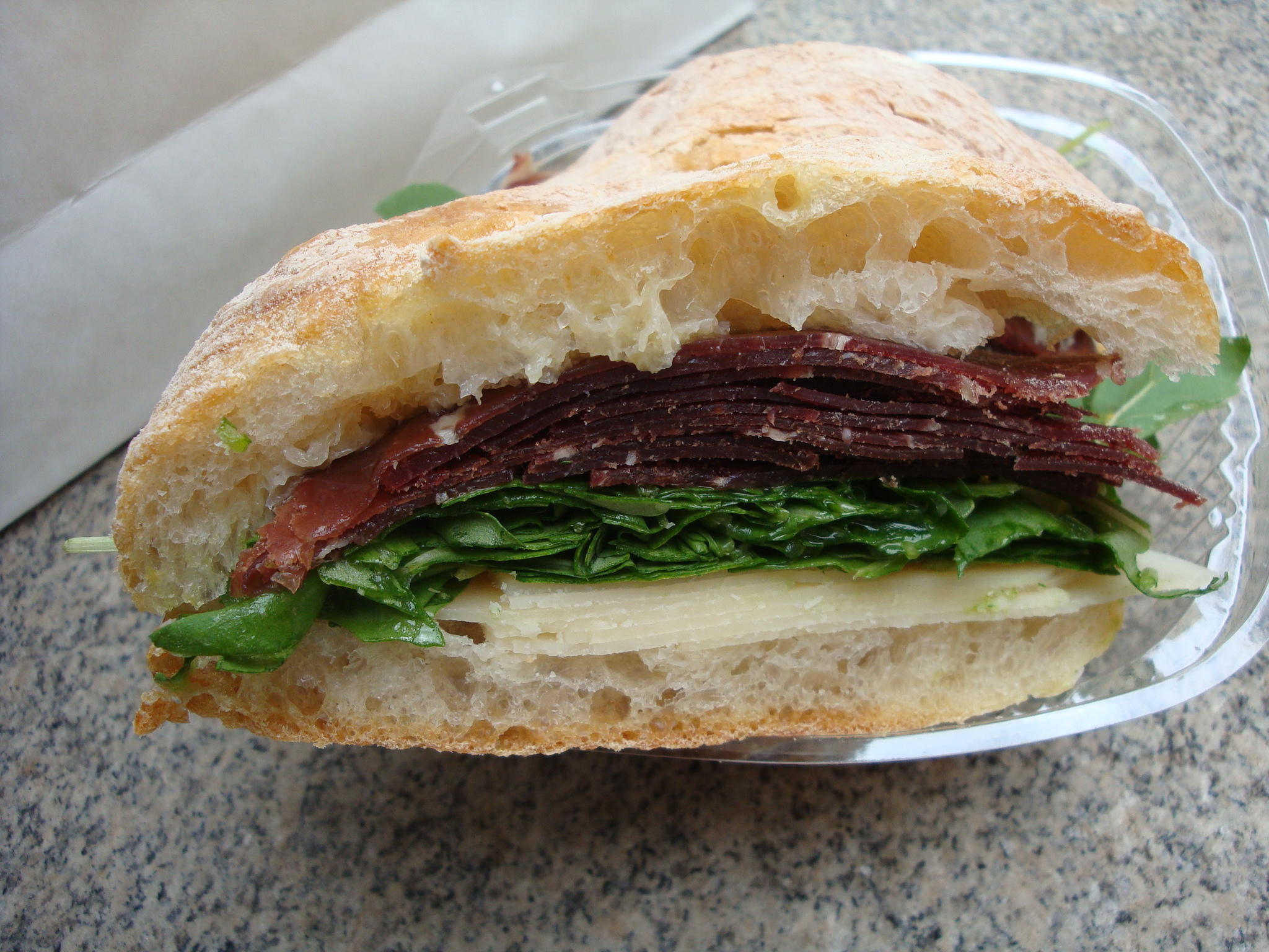 After figuring out where to get food to go (they also have a small seating area with table service) I placed my order for the sandwich with bresaola, parmigiano and arugula.