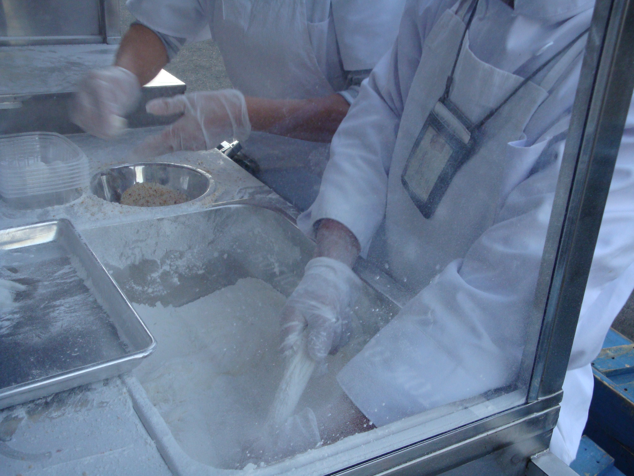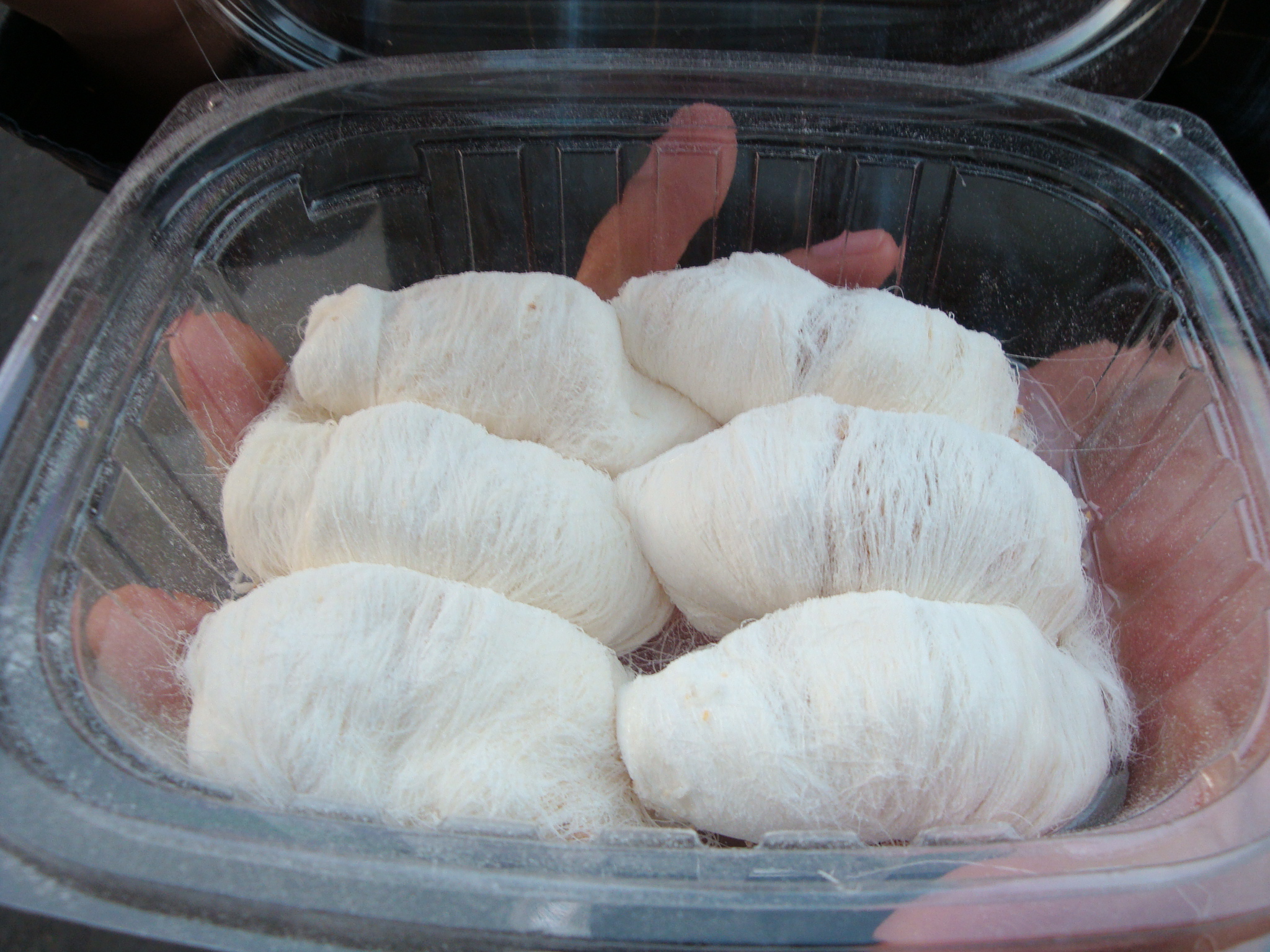 There was a lot of pulling and stretching involved by Yao, in a vat of what looked like powdered sugar. The woman was standing by the little vat of the nutty filling. It’s then rolled into little oblong shapes that look like cocoons, but (I’m guessing here) taste so much better.