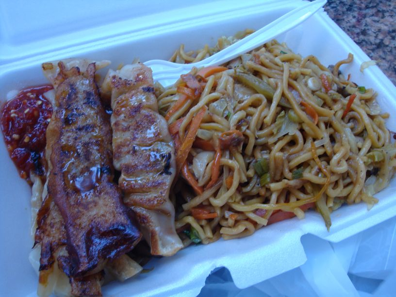 The menu hasn’t changed much from when the cart first launched, other than the addition of Chinese spaghetti. They have pork, chicken, beef and kimchi, and vegetable potstickers, the spaghetti and various teas and milk teas. They have also introduced lunch and dinner combos where you can get either 10 potstickers or 5 potstickers and Chinese spaghetti for $6, or 10 dumplings and spaghetti for $8.