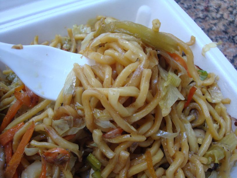And if you aren’t full after eating the five dumplings, you will be after the Chinese spaghetti. I don’t know what the secret ingredient is in this stuff but I couldn’t stop eating it! It’s like my brain knew I was eating the junkiest Chinese food ever, but my mouth told it to shut up and mind its own business. This is a worthy addition to the cart, and if you are a fan of the sauteed Chinese noodle family you might want to give this a shot.