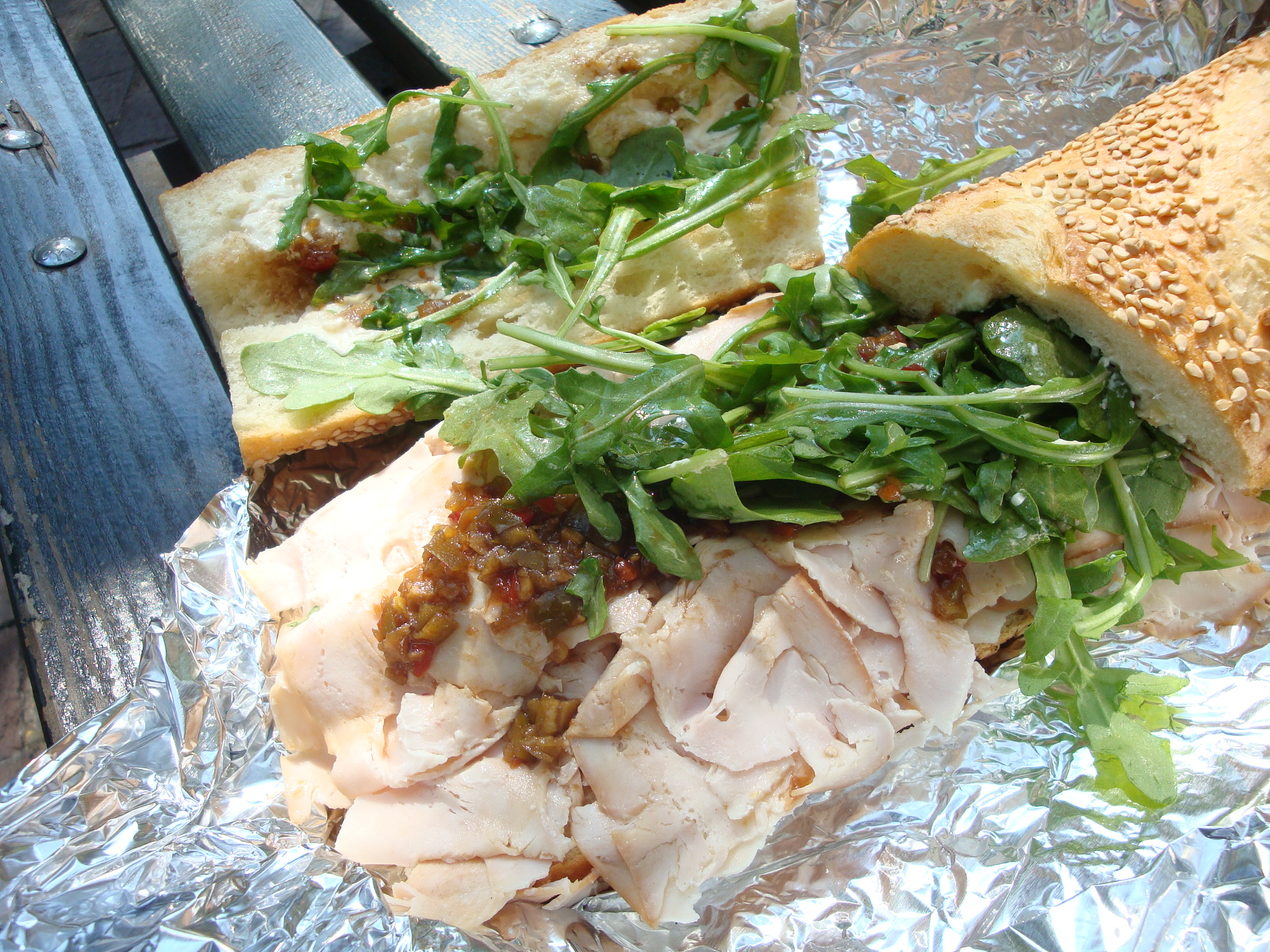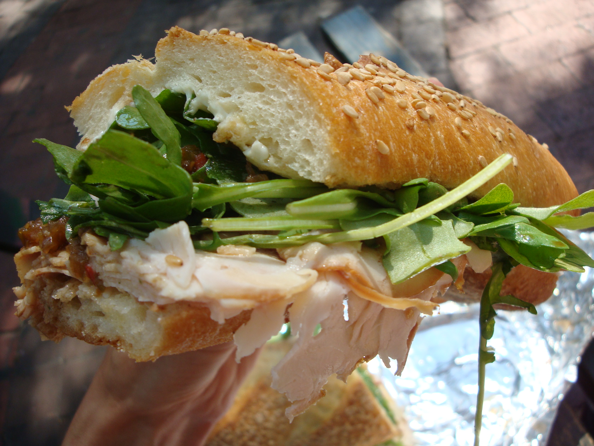 The Romeo has thinly sliced roast chicken, eggplant caponata and arugula, with some bel paese cheese spread on the top piece of bread. There was no toasting of the bread, no mayo (don’t even ask for that, or fear for your life) and I saw the chicken being sliced. It was so good I’m glad there are two stops on the train between me and this place.