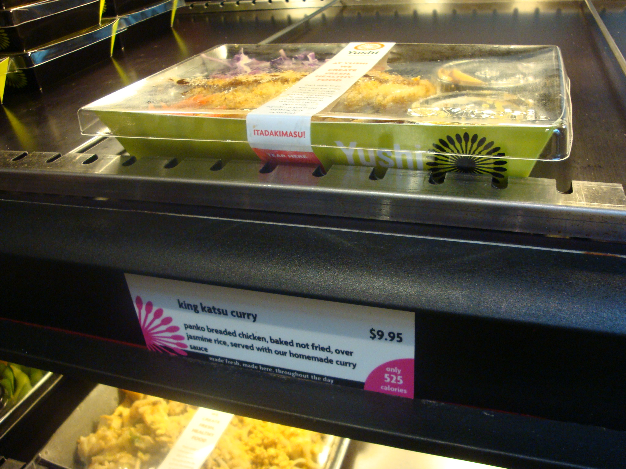 I was there for this katsu, which was not only explicitly labeled as “baked” and “healthy,” but had the calorie count listed on the card in front of it to make me feel better about my lunch decision. All of this was so wrong! I don’t eat katsu every day (or every month) and when I do maybe I like it to be fried in oil…and then doused in curry sauce.