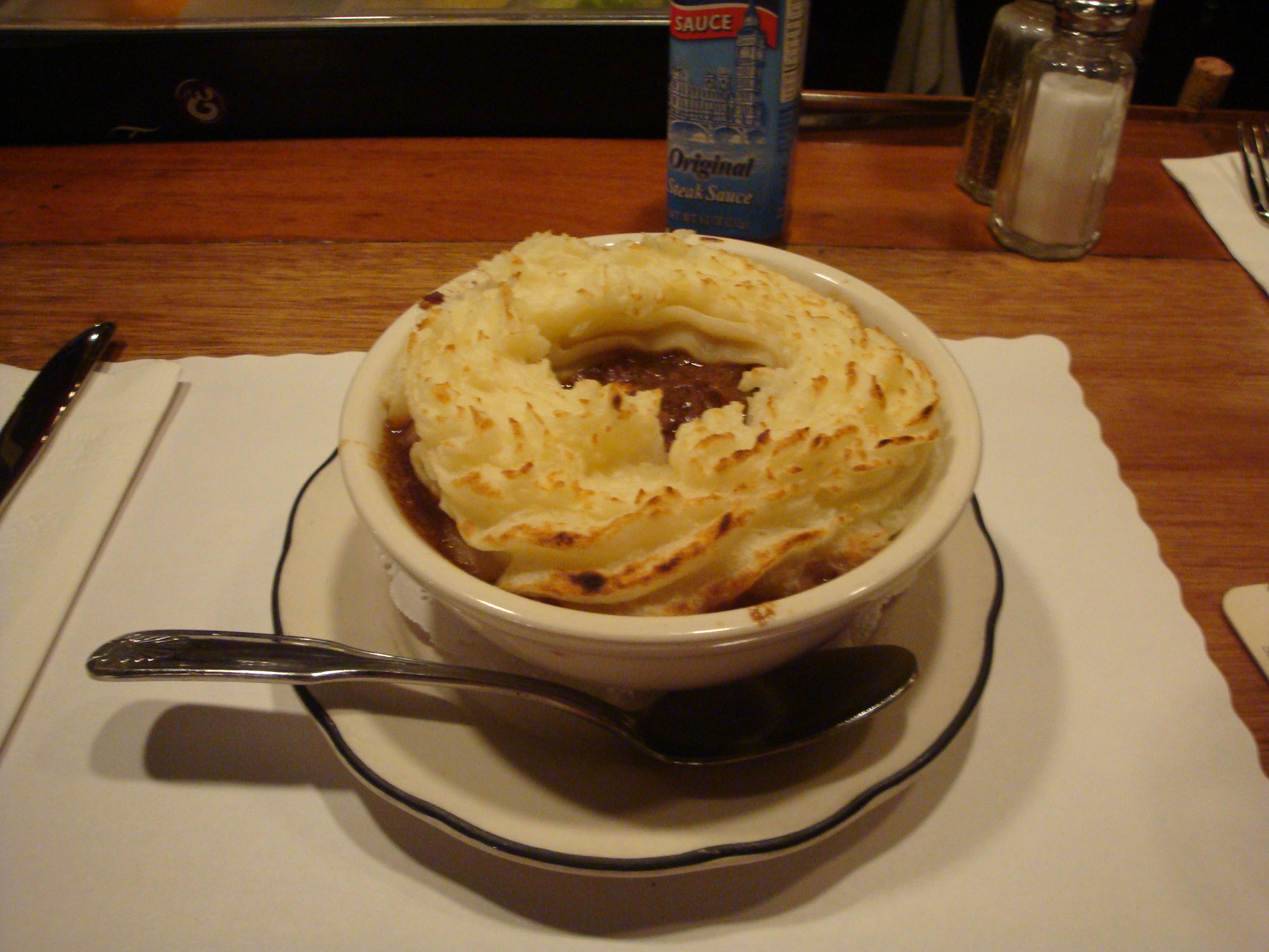 I went for the fish & chips ($9.95) and my friend got the shepherd’s pie ($9.95). I should have been tipped off of things to come when the bartender who took my order confirmed that I wanted the “bar portion.” That, my friends, is called foreshadowing.
