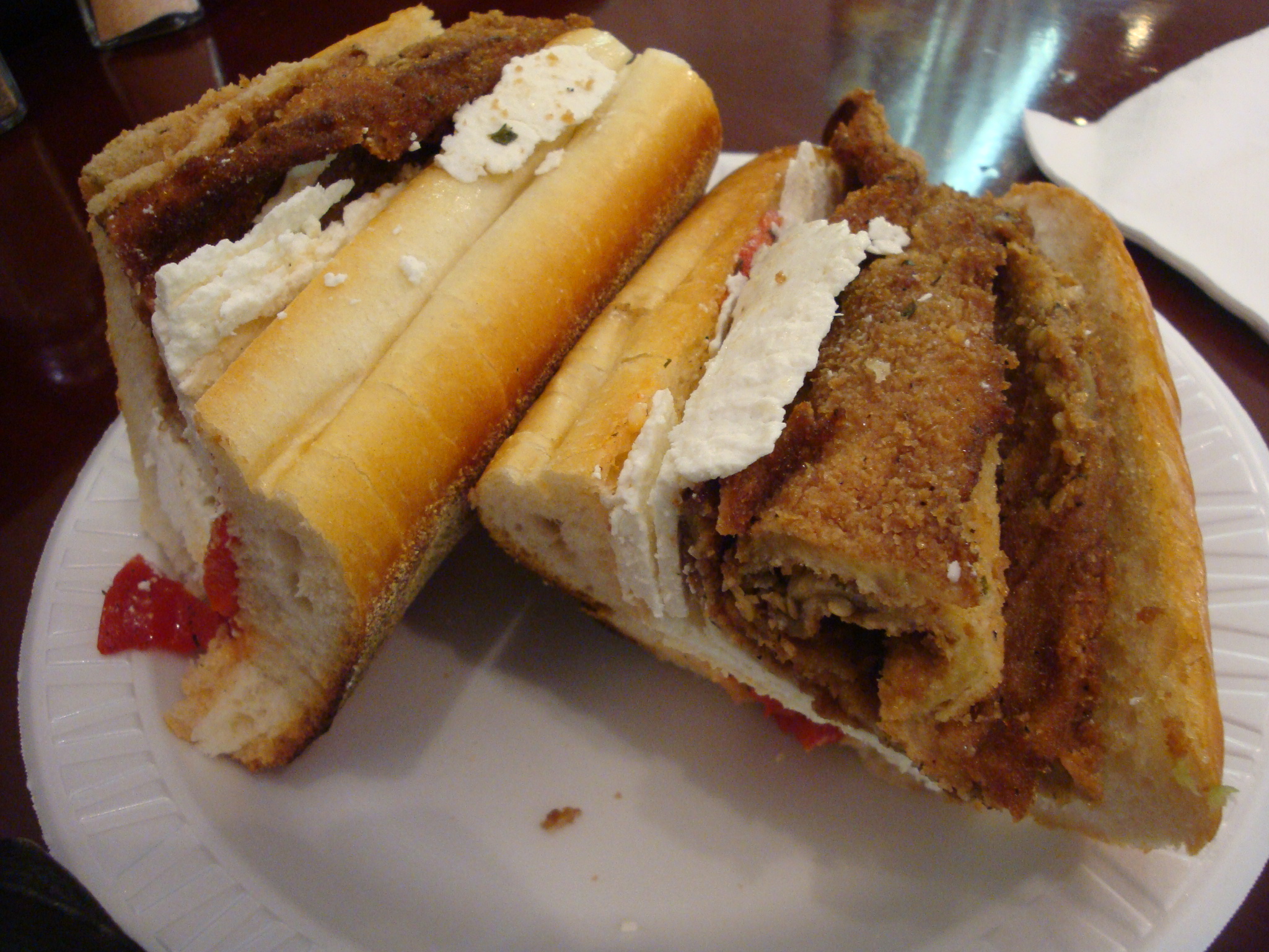 While doing that I discovered this was some expertly fried eggplant. It wasn’t greasy and tasteless and was sliced super thin and coated in breadcrumbs. I’m not always the biggest fan of things with eggplant as their main ingredient, but this I would eat again. The ricotta and peppers were just kind of there, but the sandwich as a whole was delicious and left me in a food coma for the rest of the afternoon. If you’re a light eater (or not a glutton) you could easily get two meals out of this.