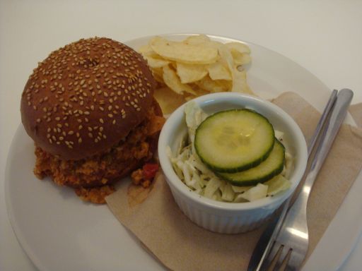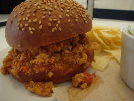 My food came out quickly enough and it was maybe 30 seconds before I went to pick up the sloppy joe and found that eating this with my hands was not going to happen. The bottom part of the bun was completely soaked through and disintegrated when I picked it up, leaving me to eat my sloppy joe with a knife and fork. It was still delicious, but they might want to think about using a more structurally sound bun.