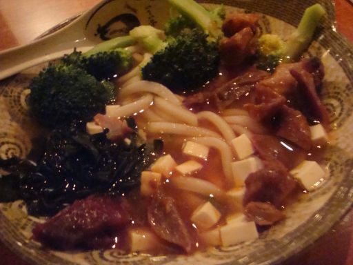 I ate the pile of the pork in order to get to the noodles below and discovered chunks of tofu, seaweed and a bunch of broccoli underneath. It was like a lunchtime archaeological dig! By the time I ate the noodles and took a slurp of the broth I was unsurprised that it tasted mostly of barbeque sauce.