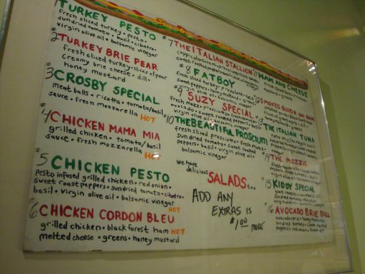 Eat My Chocolate is somewhat hidden under scaffolding so you have to look for it. And when you walk in don’t be discouraged by the apparent lack of sandwiches: The menu hangs on the wall, and those guys standing in the back are who will make your sandwiches. As they instructed me, just yell out what you want (by name, not number) and you’ll have your food after a short wait.